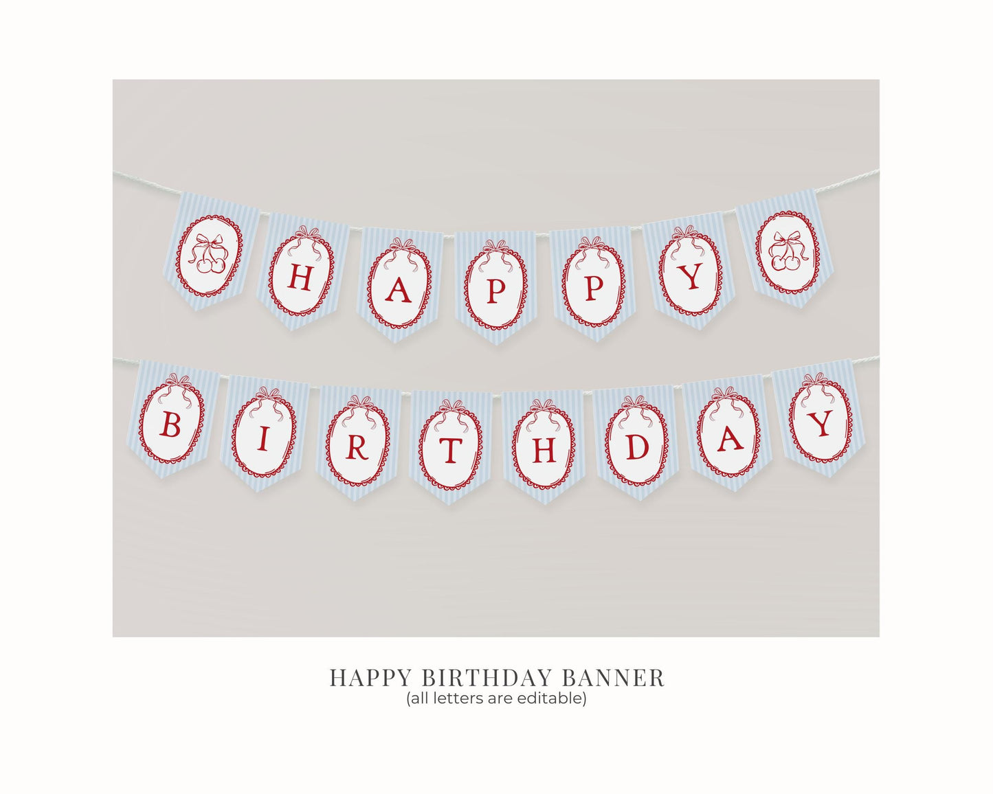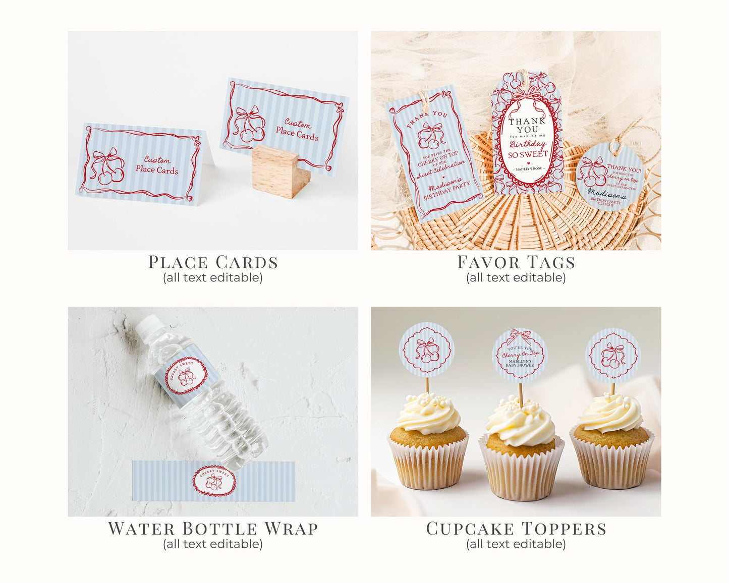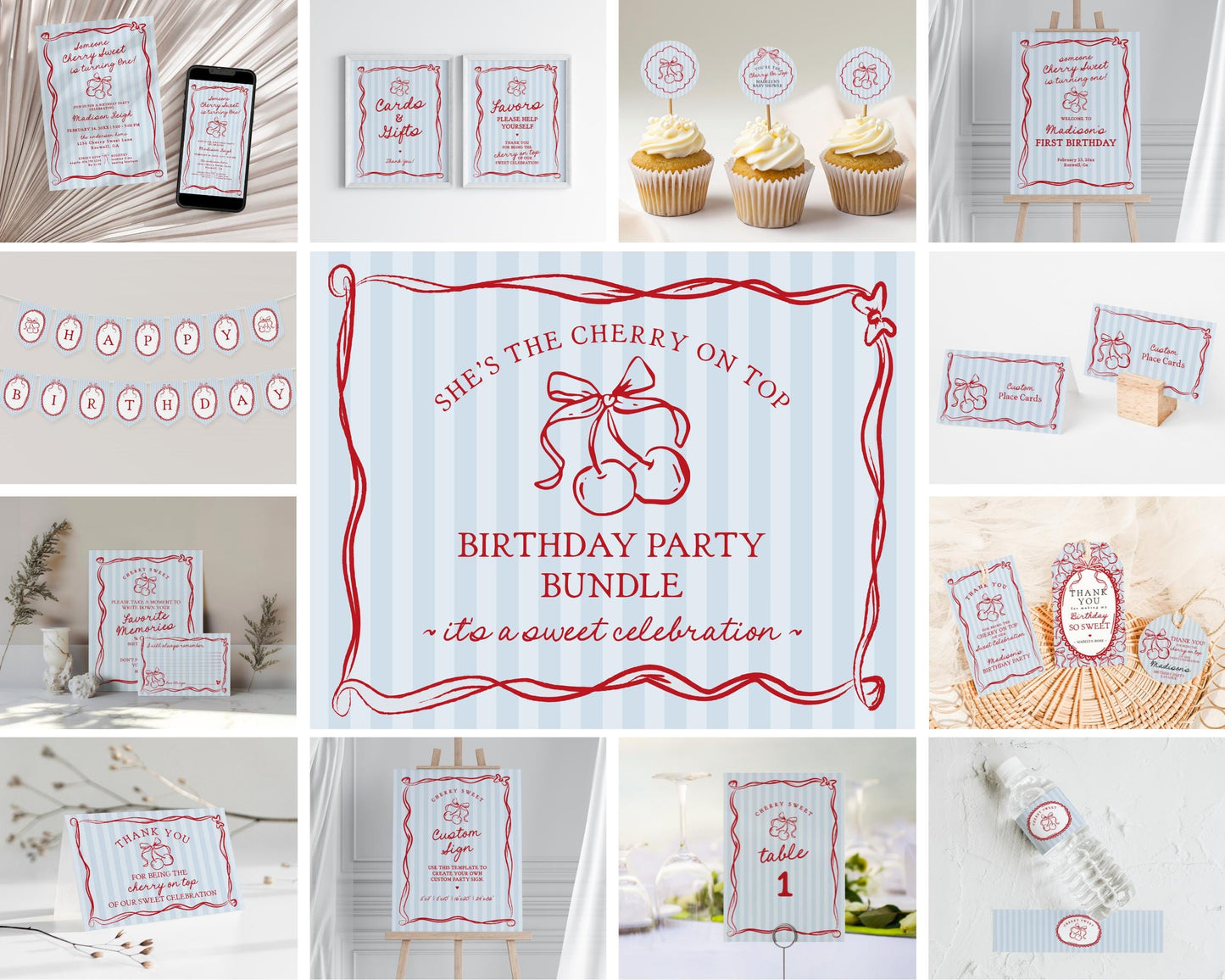 Blue Cherry Coquette Bow Birthday Bundle Template