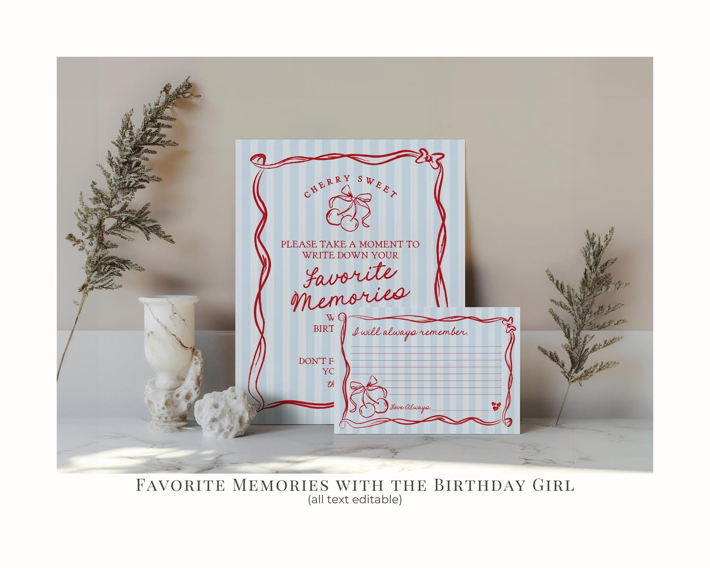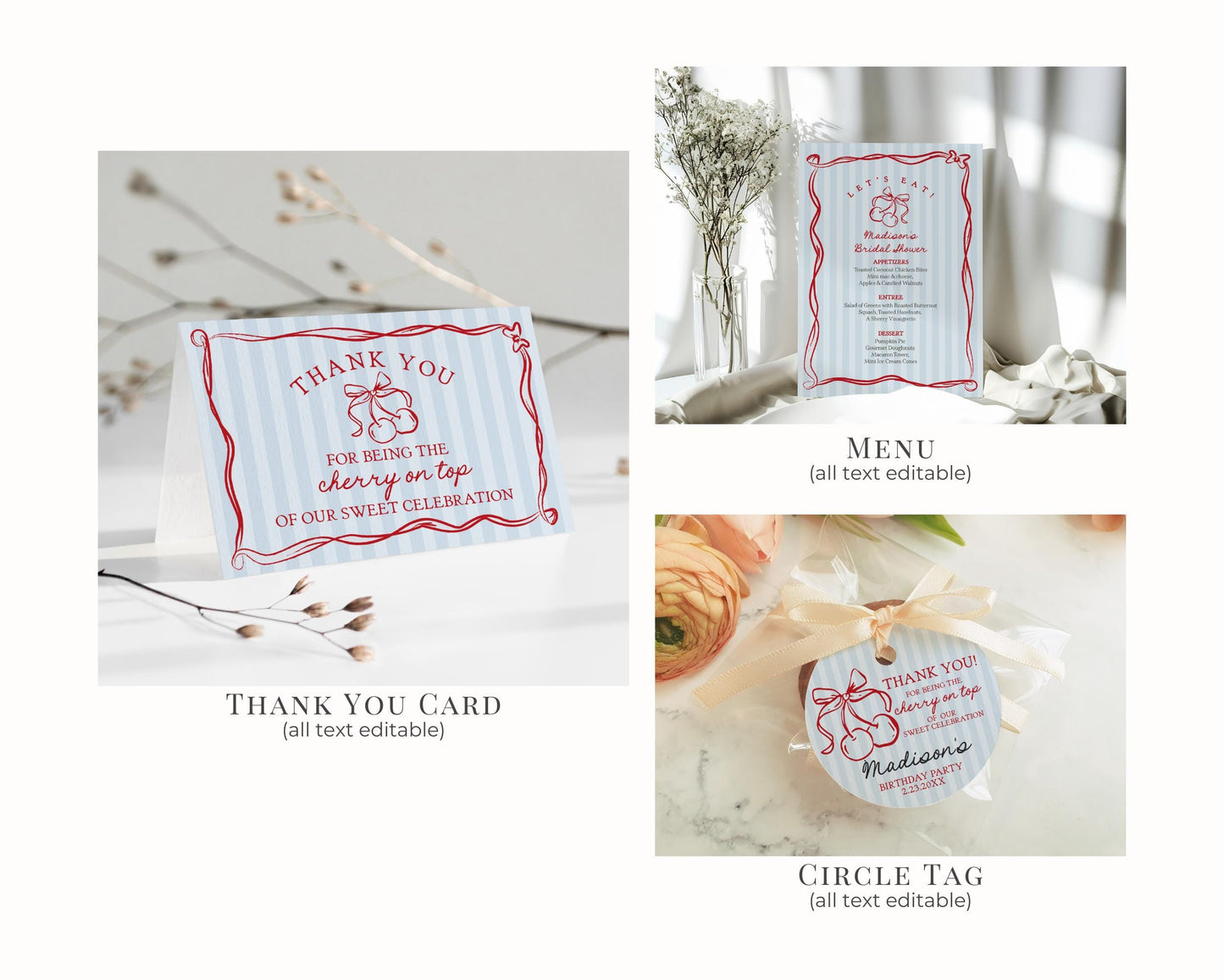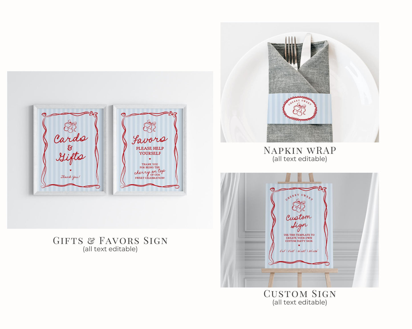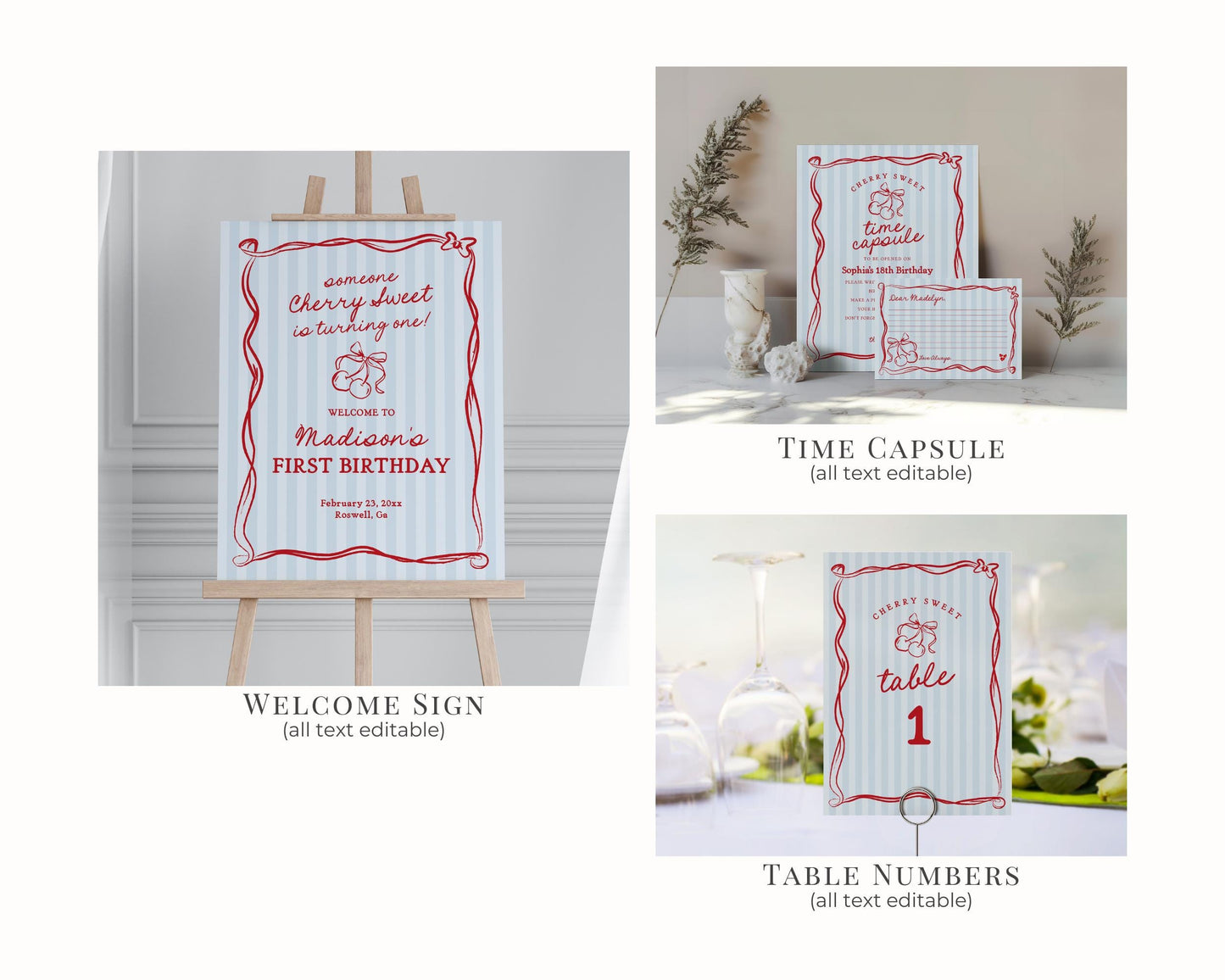 Blue Cherry Coquette Bow Birthday Bundle Template