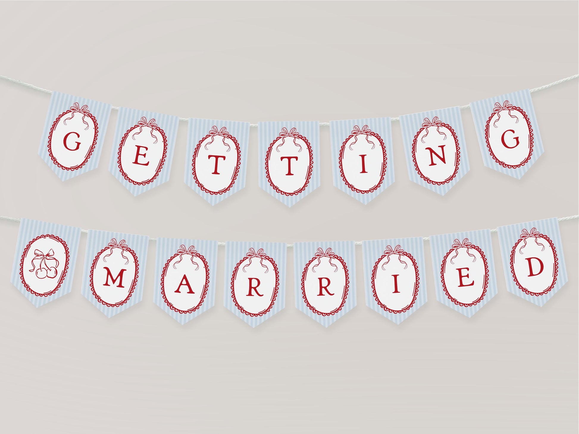 Blue Cherry Coquette Bow Bridal Shower Banner Template, Retro Cherry on Top Bridal Brunch, Hand Drawn Party Decor Doodle Cherries WP1039