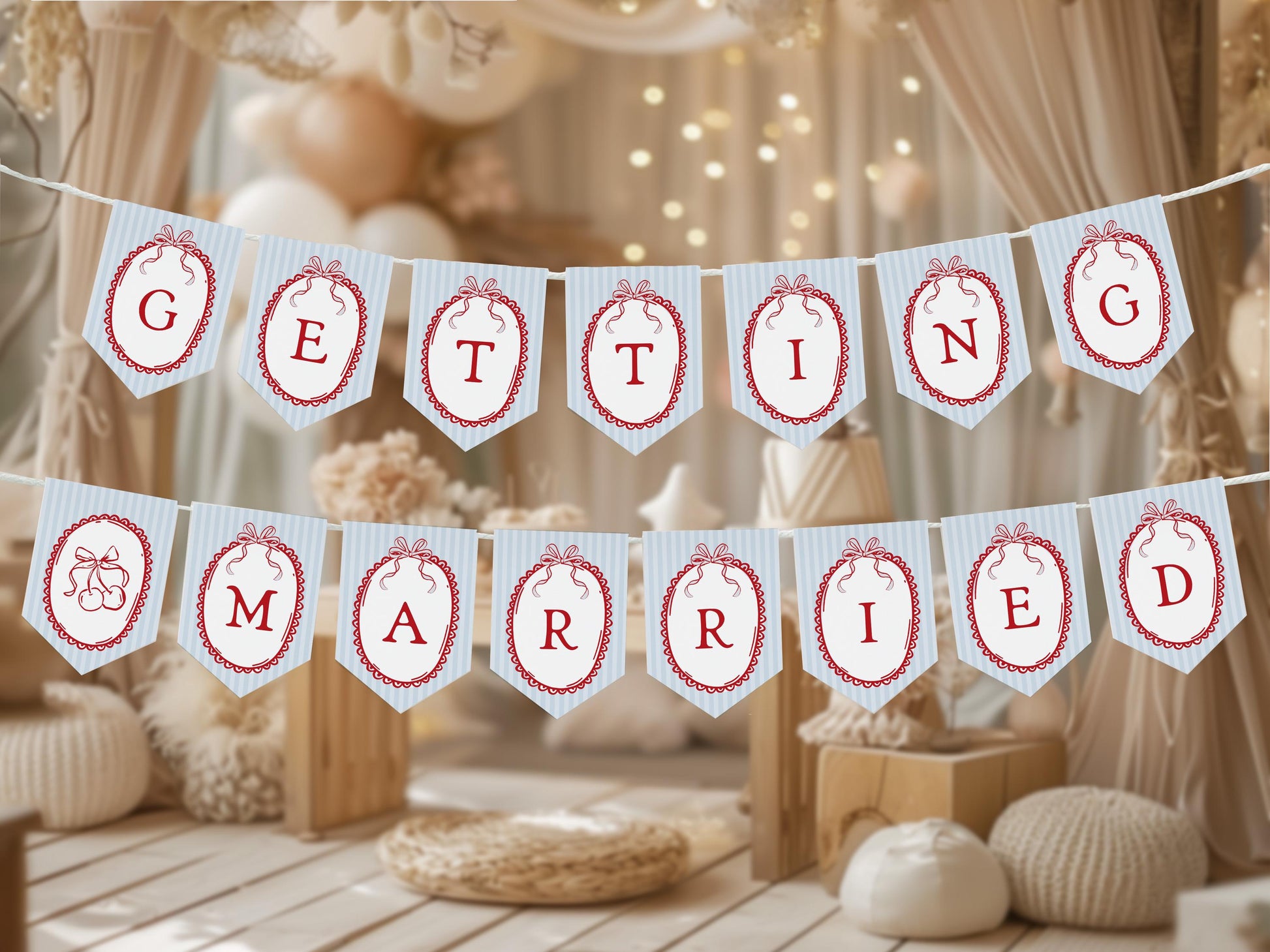 Blue Cherry Coquette Bow Bridal Shower Banner Template