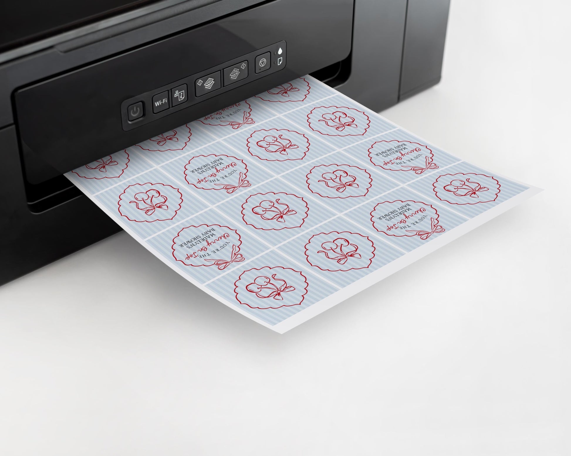 Blue Cherry Coquette Bow Baby Shower Favor Tags Template, Retro Cherry on Top Baby Sprinkle, Hand Drawn Party Decor Doodle Cherries WP1039