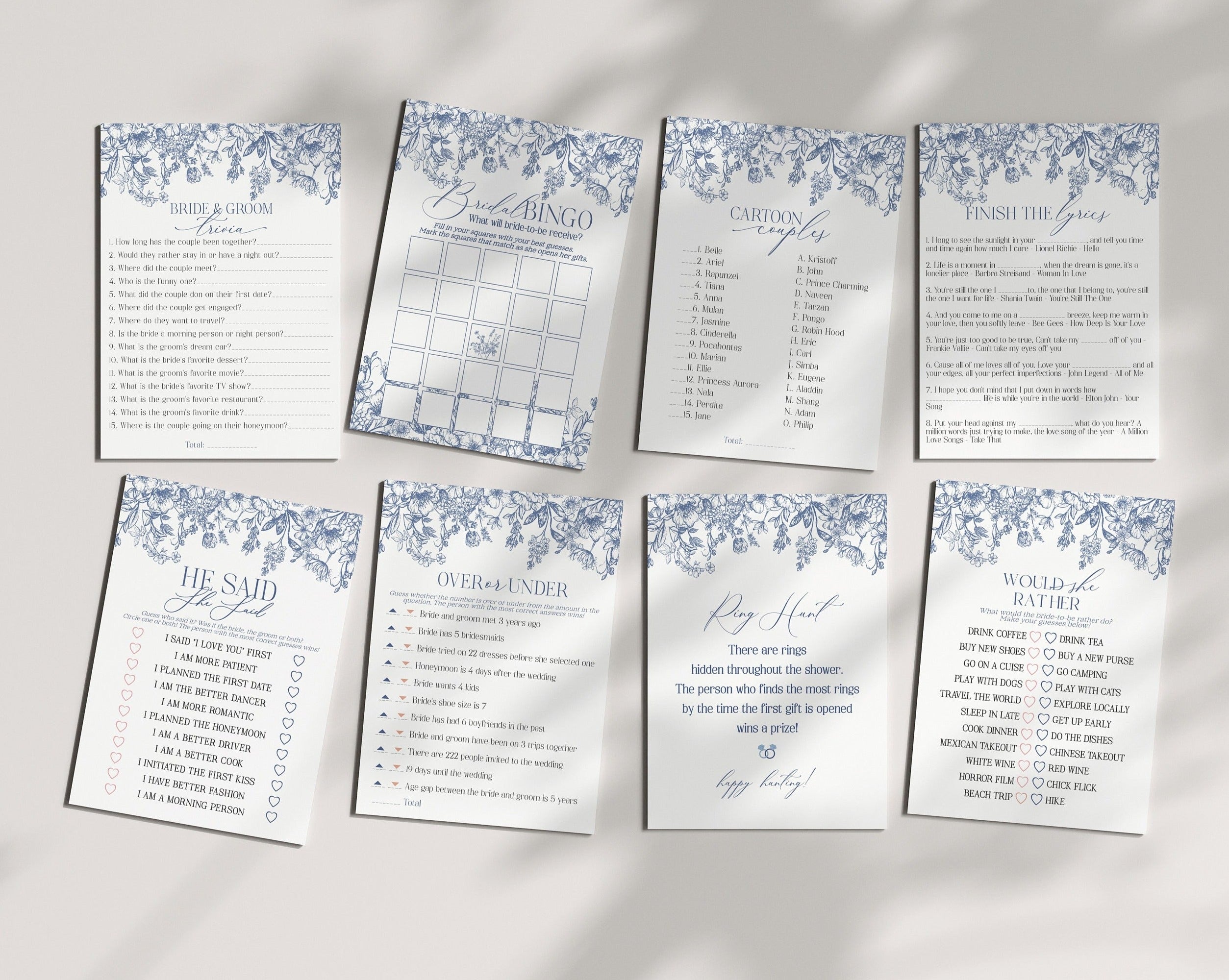 Blue Chinoiserie Bridal Shower Games Set Printable Template, Something Blue Before I Do Spring Bridal Shower, Toile Decor for French Shower