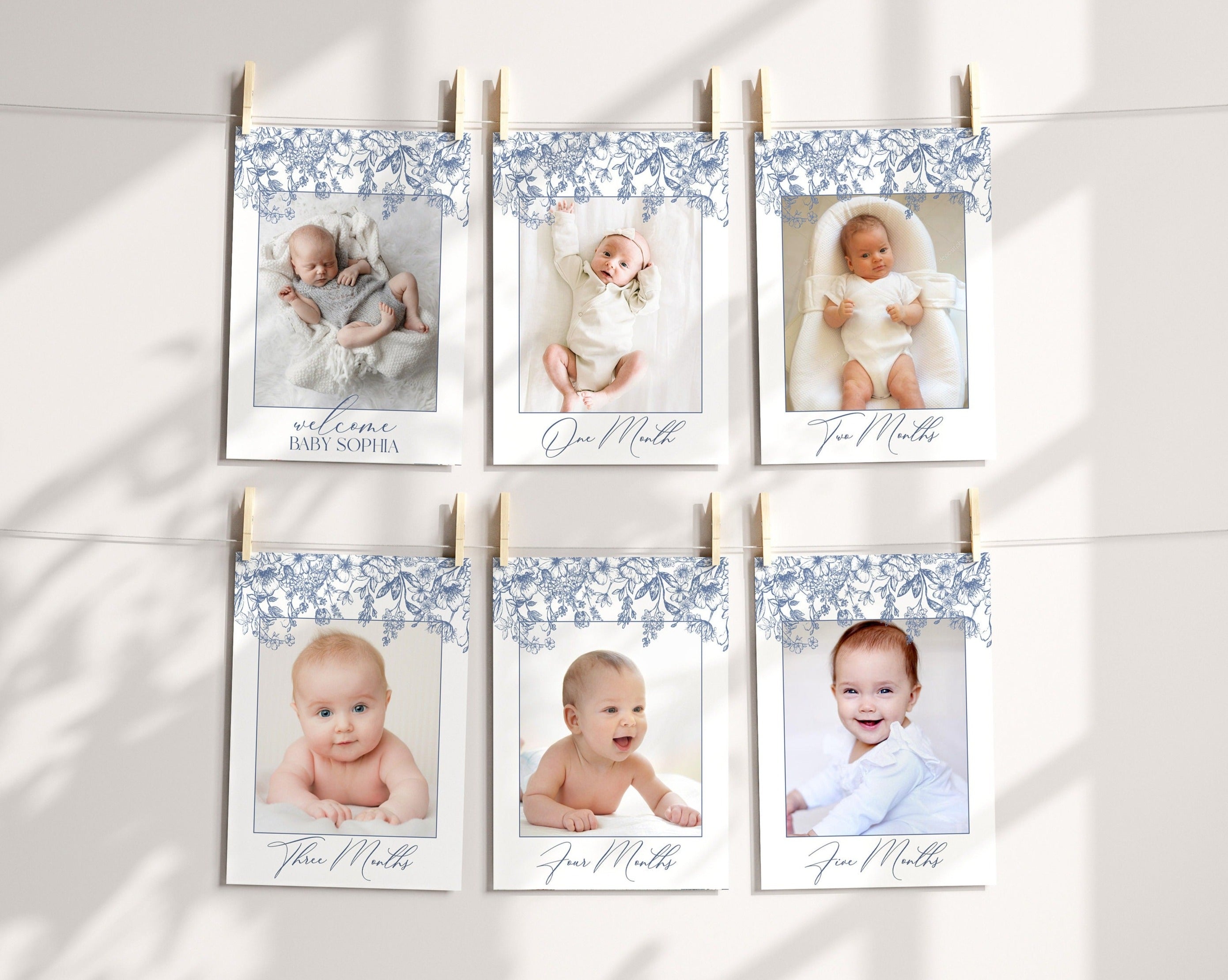 Blue Chinoiserie 1st Birthday Milestone Banner Printable Template, Elegant Toile Decor for Birthday, French Theme Birthday Party for Spring