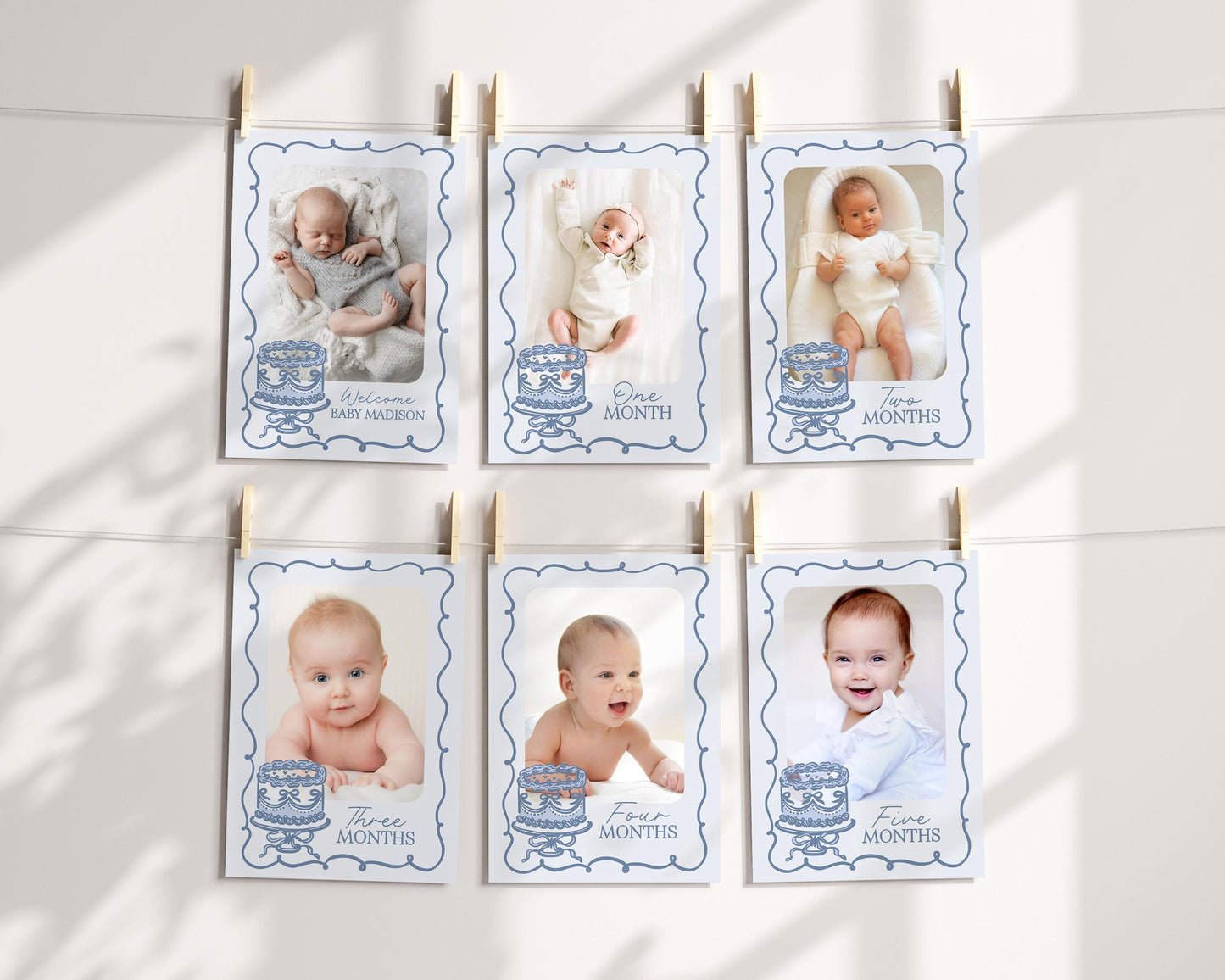 Blue Coquette Heart Cake First Year Milestone Sign Printable Template