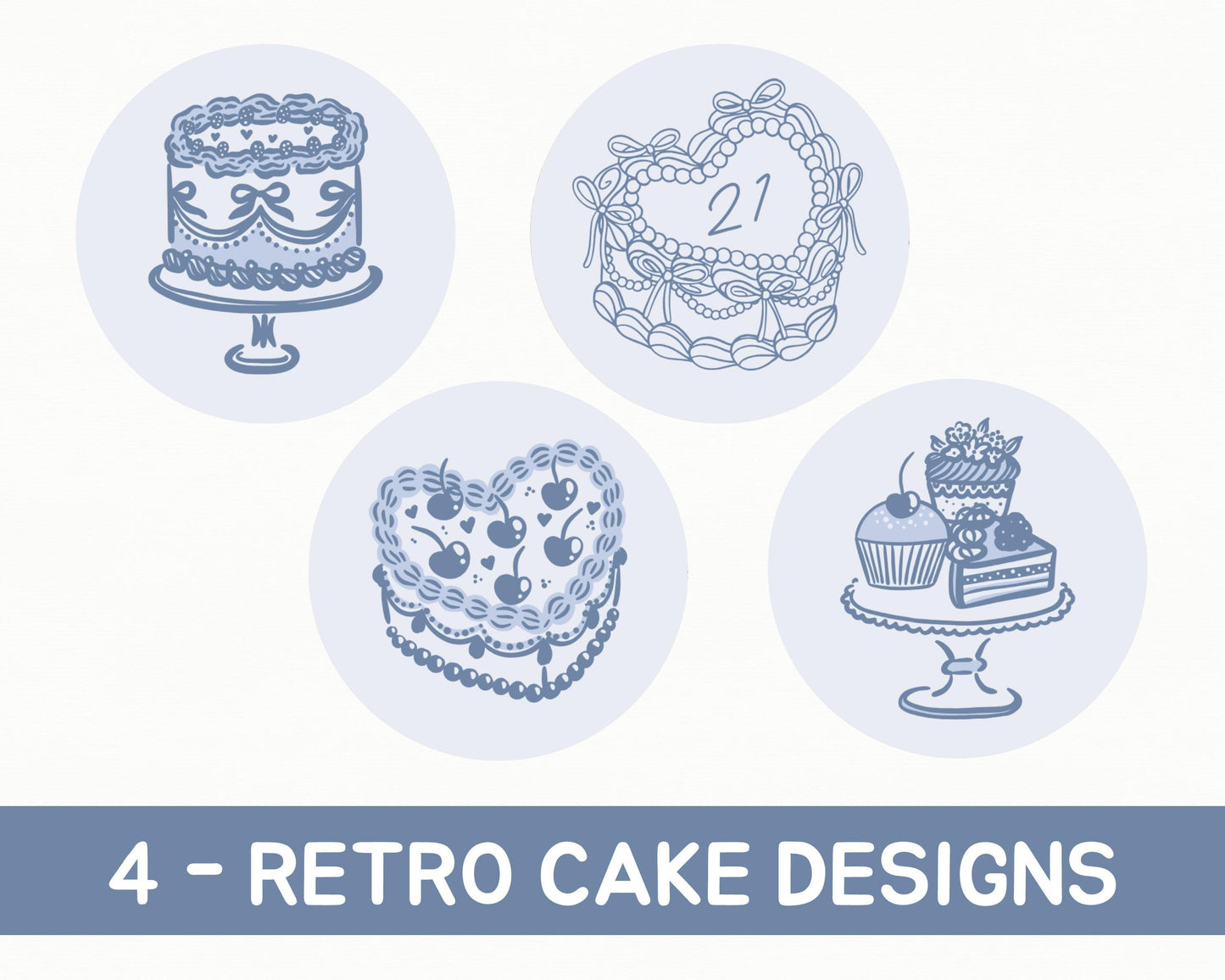 Blue Retro Heart Coquette Cake Birthday Bundle Template
