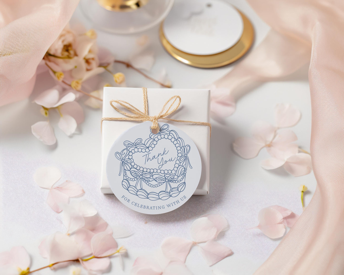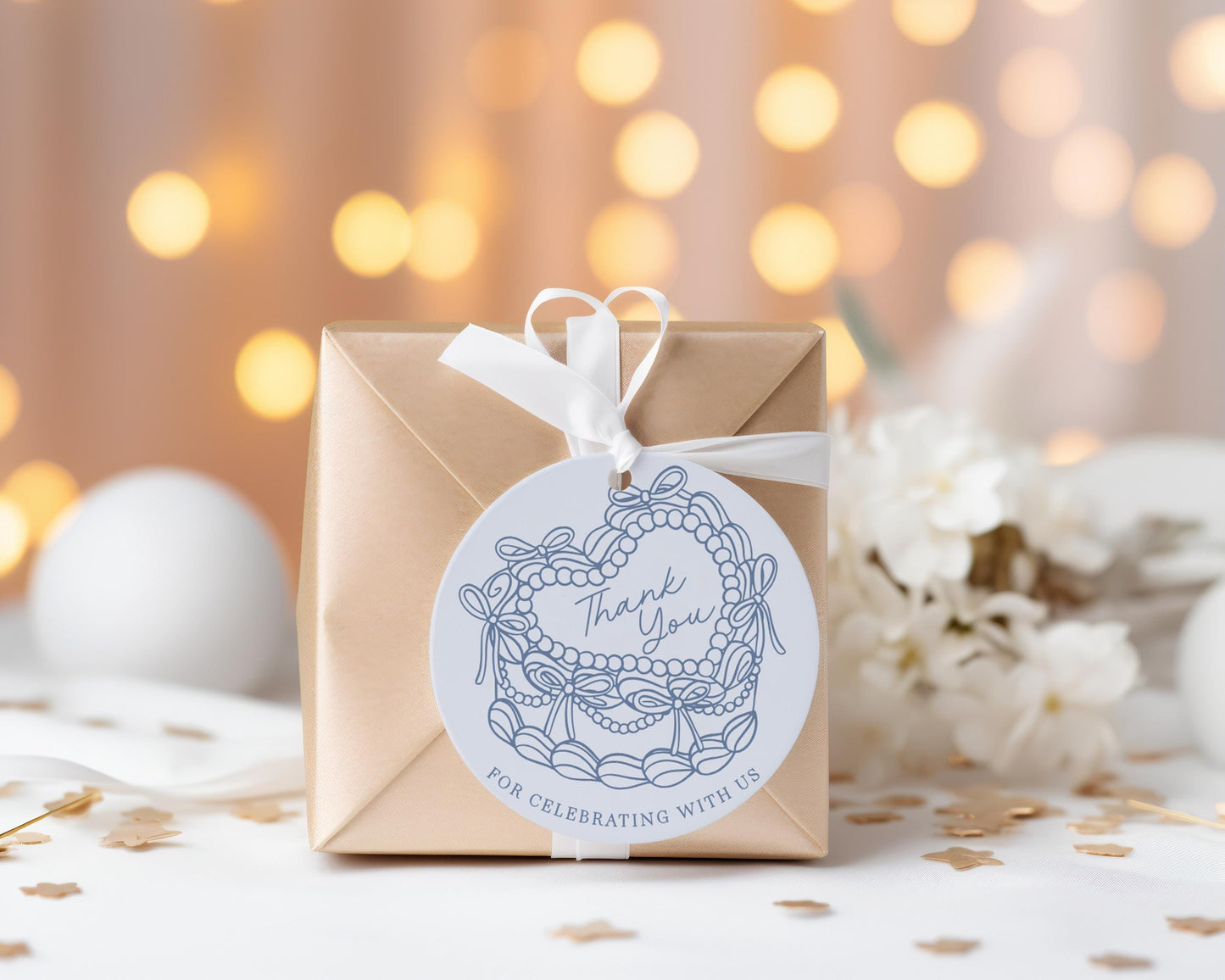 Blue Coquette Heart Cake Bridal Shower Favor Tags Printable Template