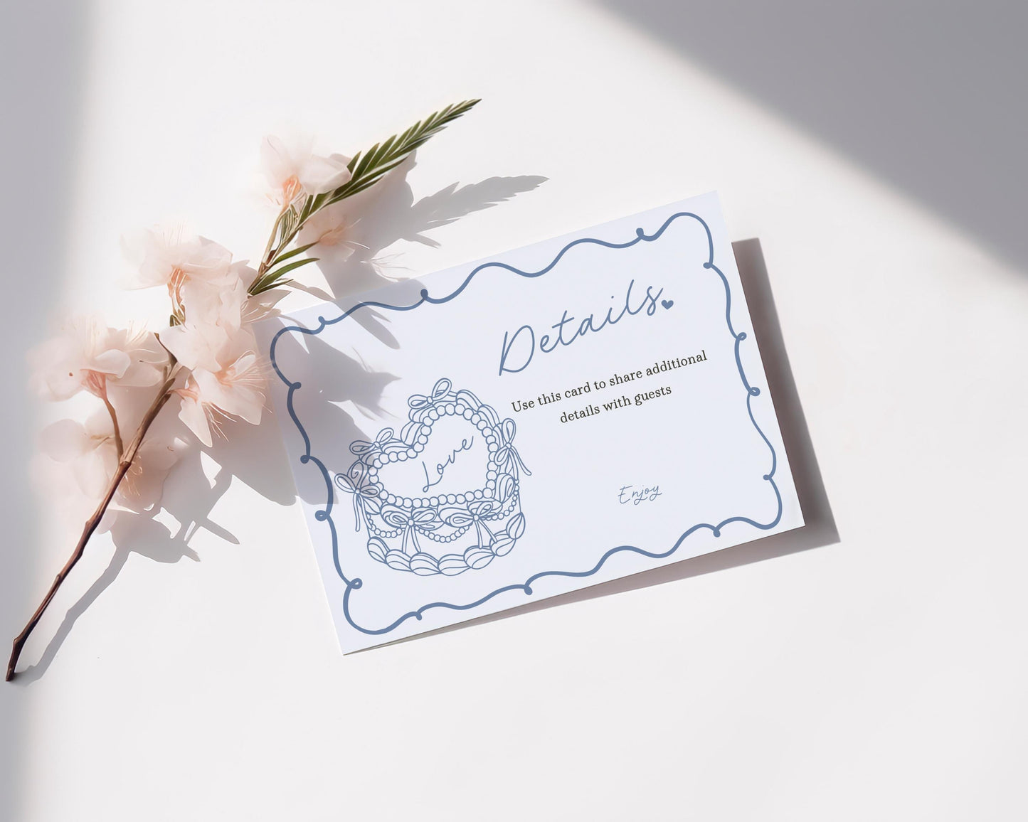 Blue Coquette Heart Cake Recipe Card Printable Template, Vintage Blue Bow French Theme Retro Wedding Cake Bridal Brunch WP1034