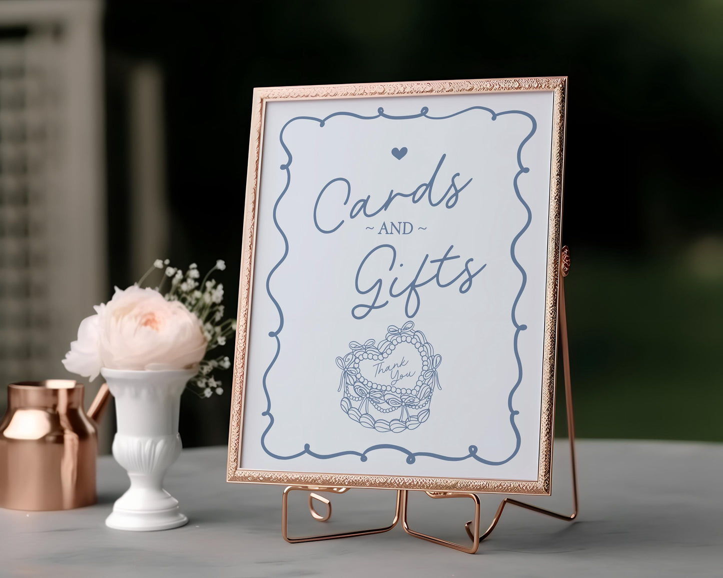 Blue Coquette Heart Cake Cards & Gifts and Favors Sign Template