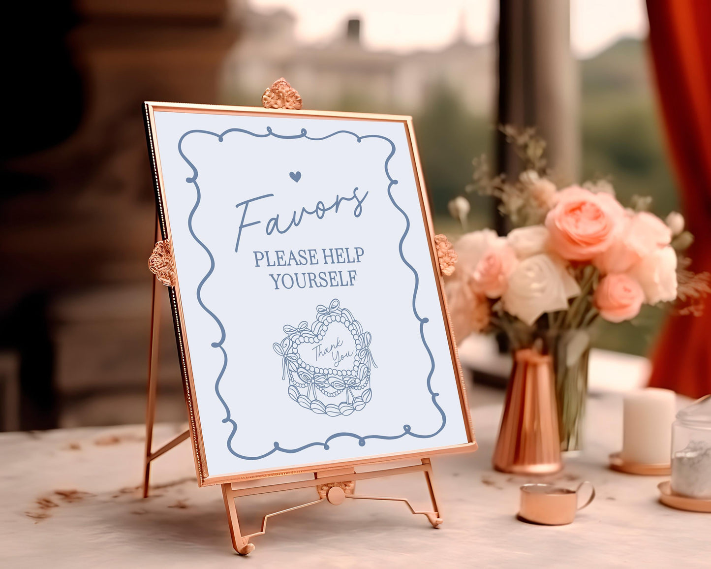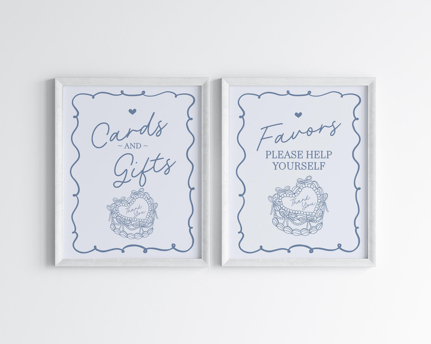 Blue Coquette Heart Cake Bridal Shower Welcome Sign Printable Template