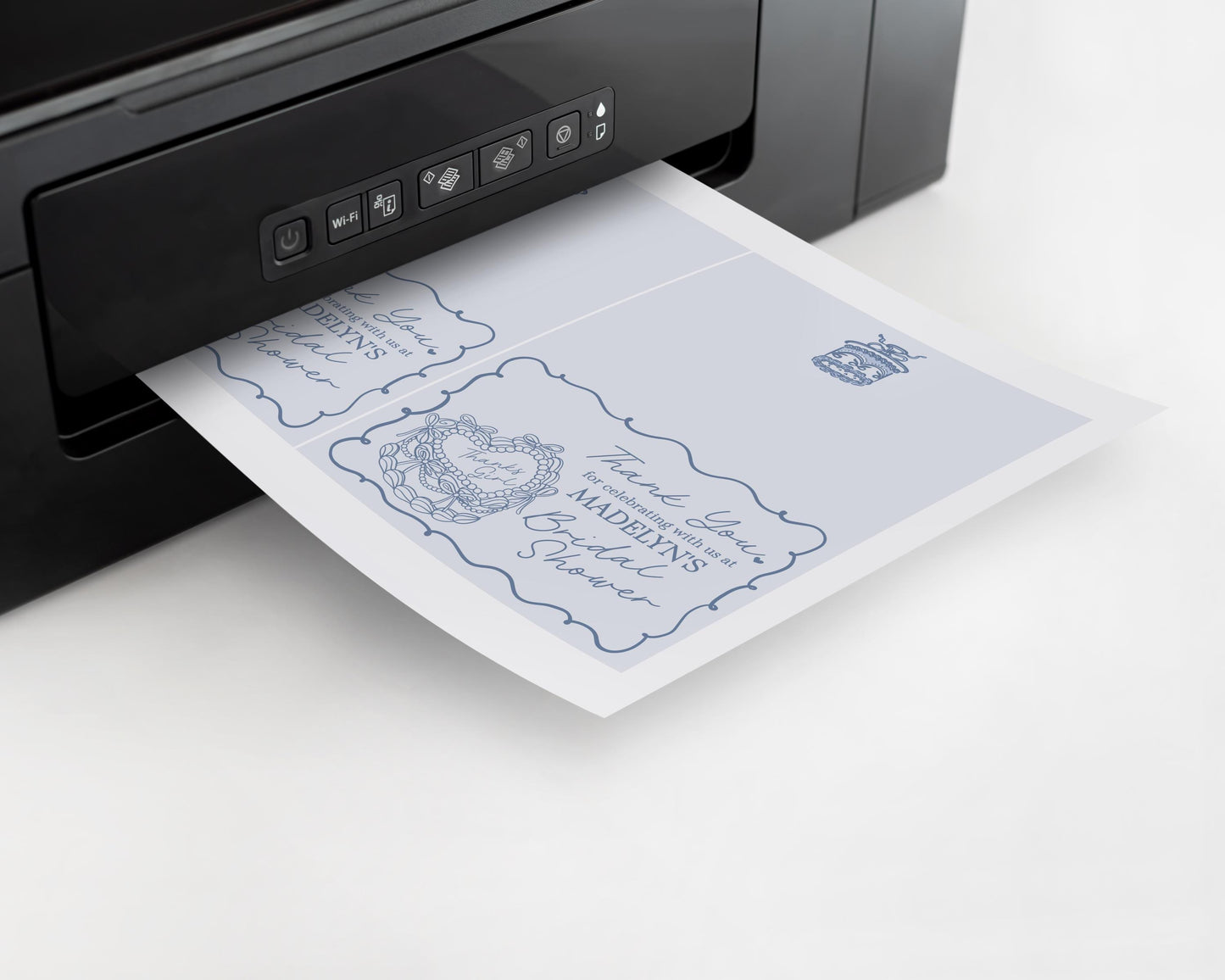 Blue Coquette Heart Cake Bridal Shower Favor Tags Printable Template