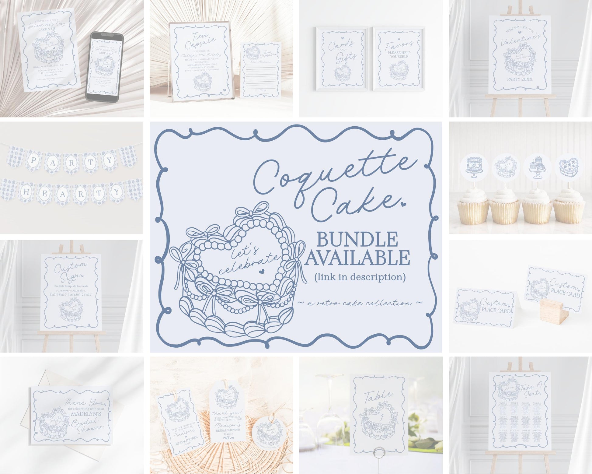 Blue Retro Coquette Heart Cake Galentines Party Bundle Template