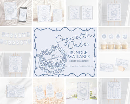 Blue Retro Coquette Heart Cake Bridal Shower Bundle Printable Template