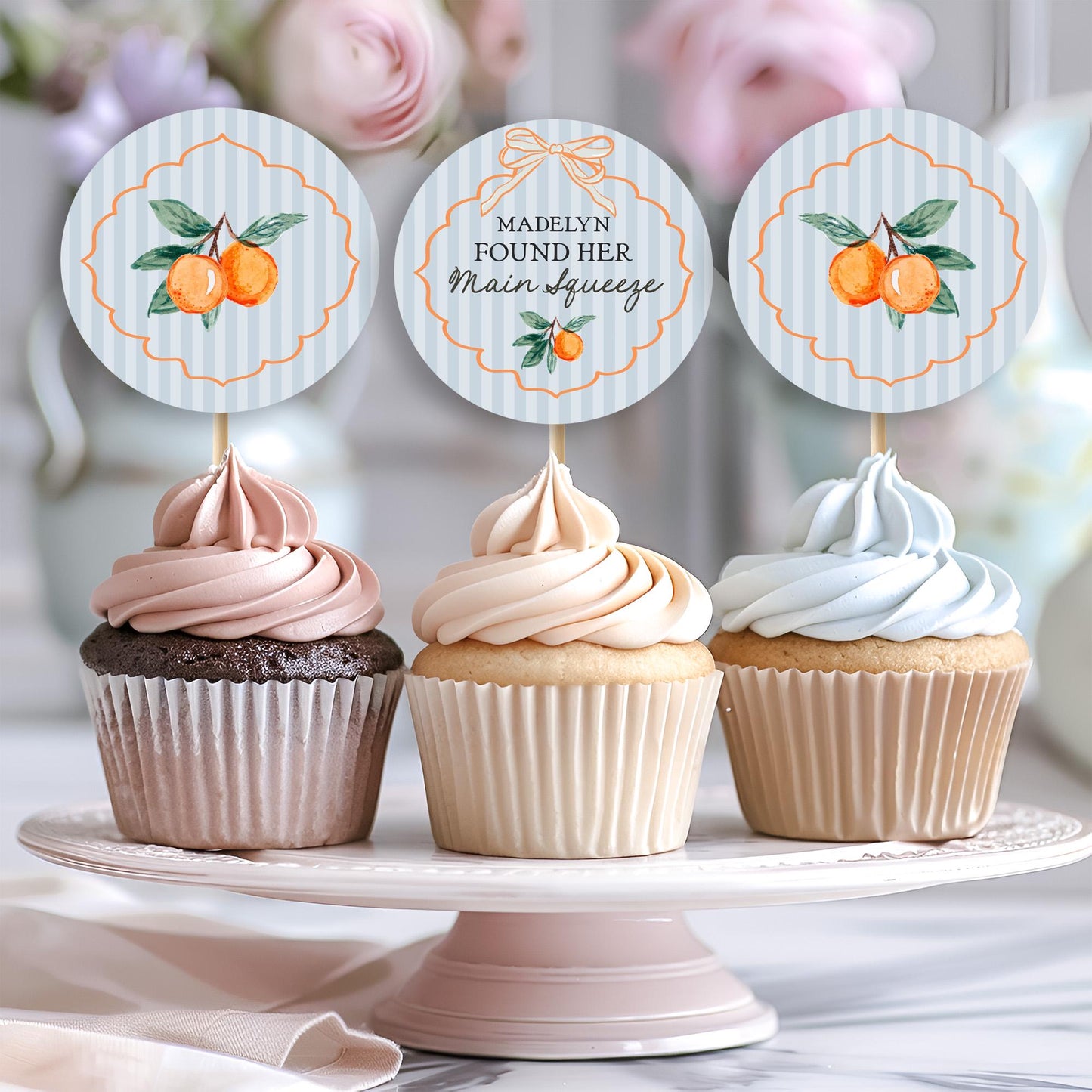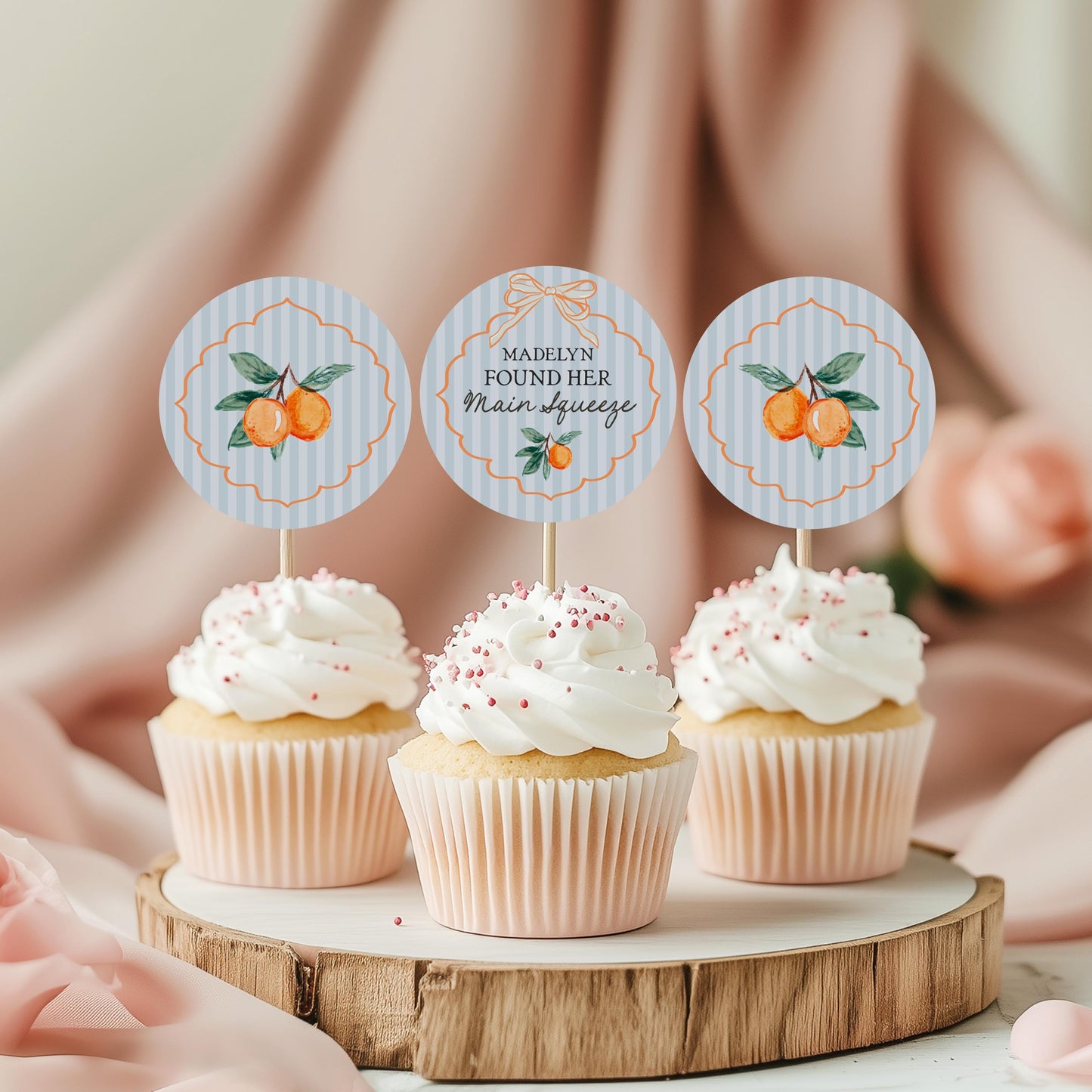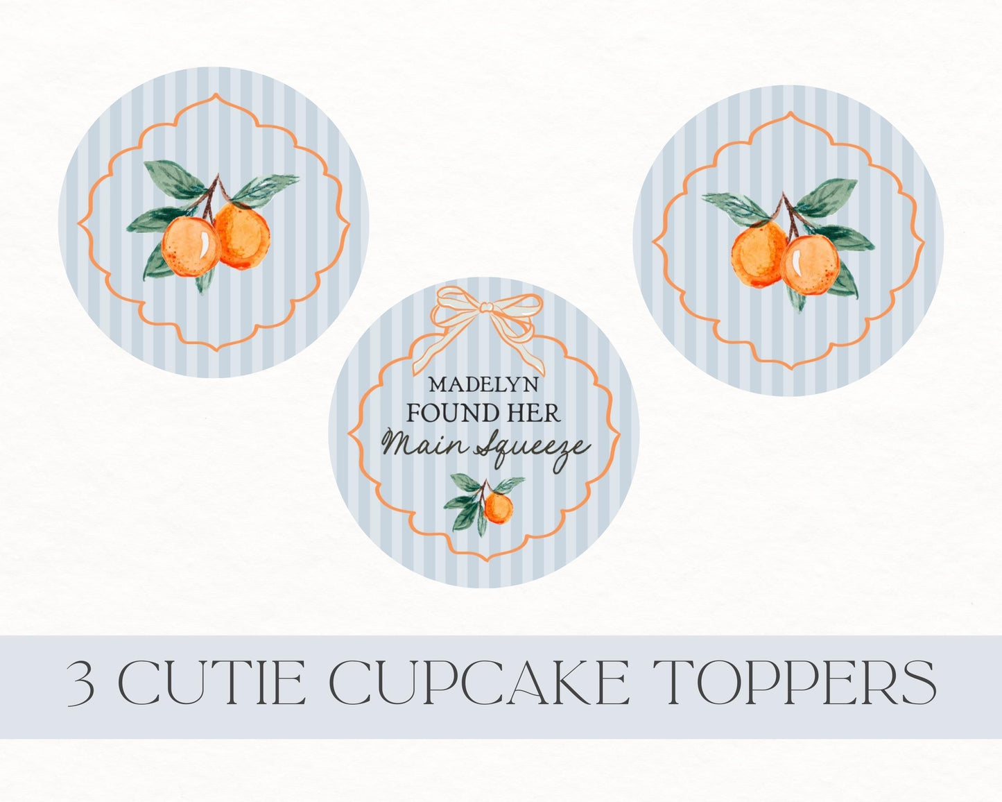 Blue Little Cutie Cupcake Toppers Printable Template, Pastel Citrus Baby Shower for Summer Birthday Party Decor WP1052