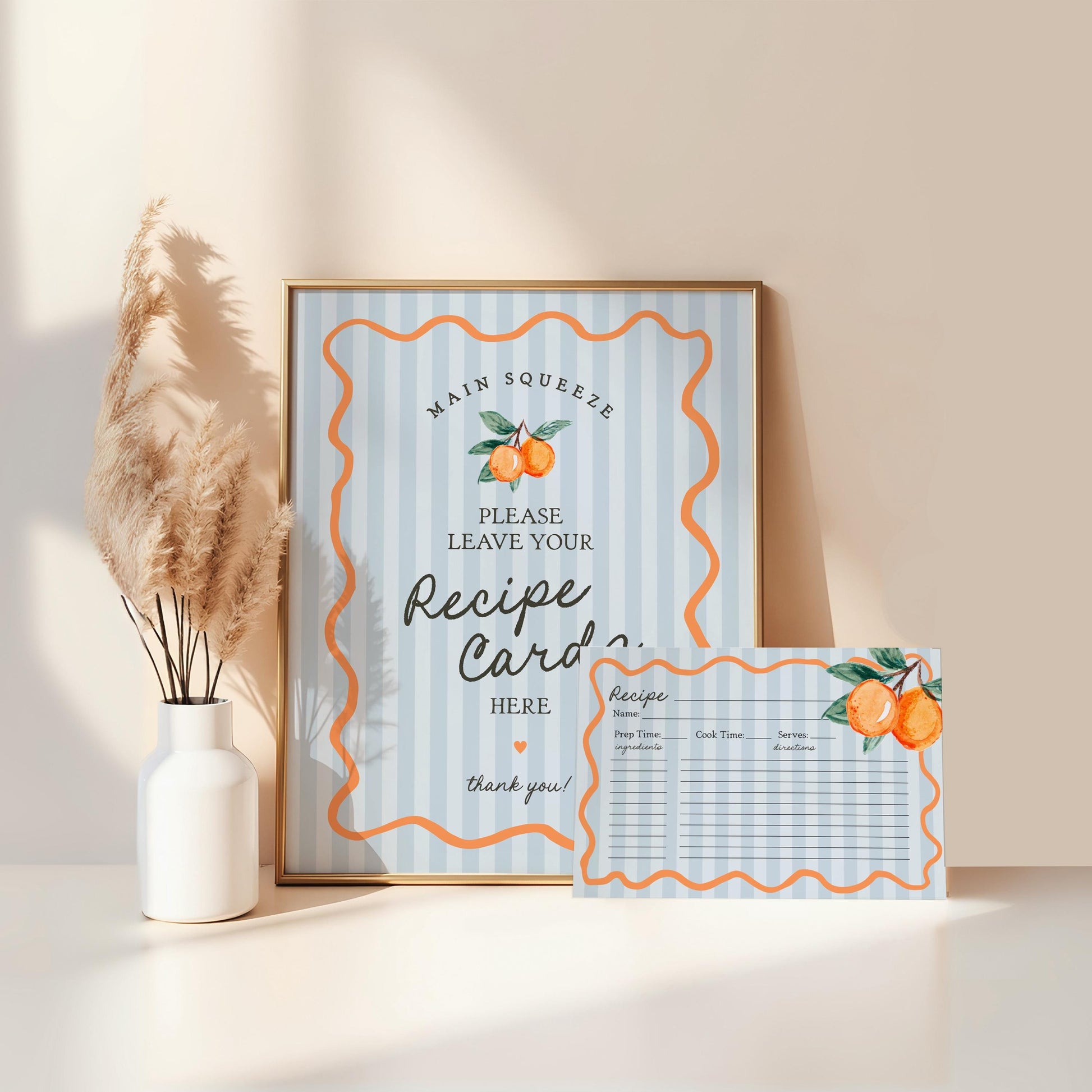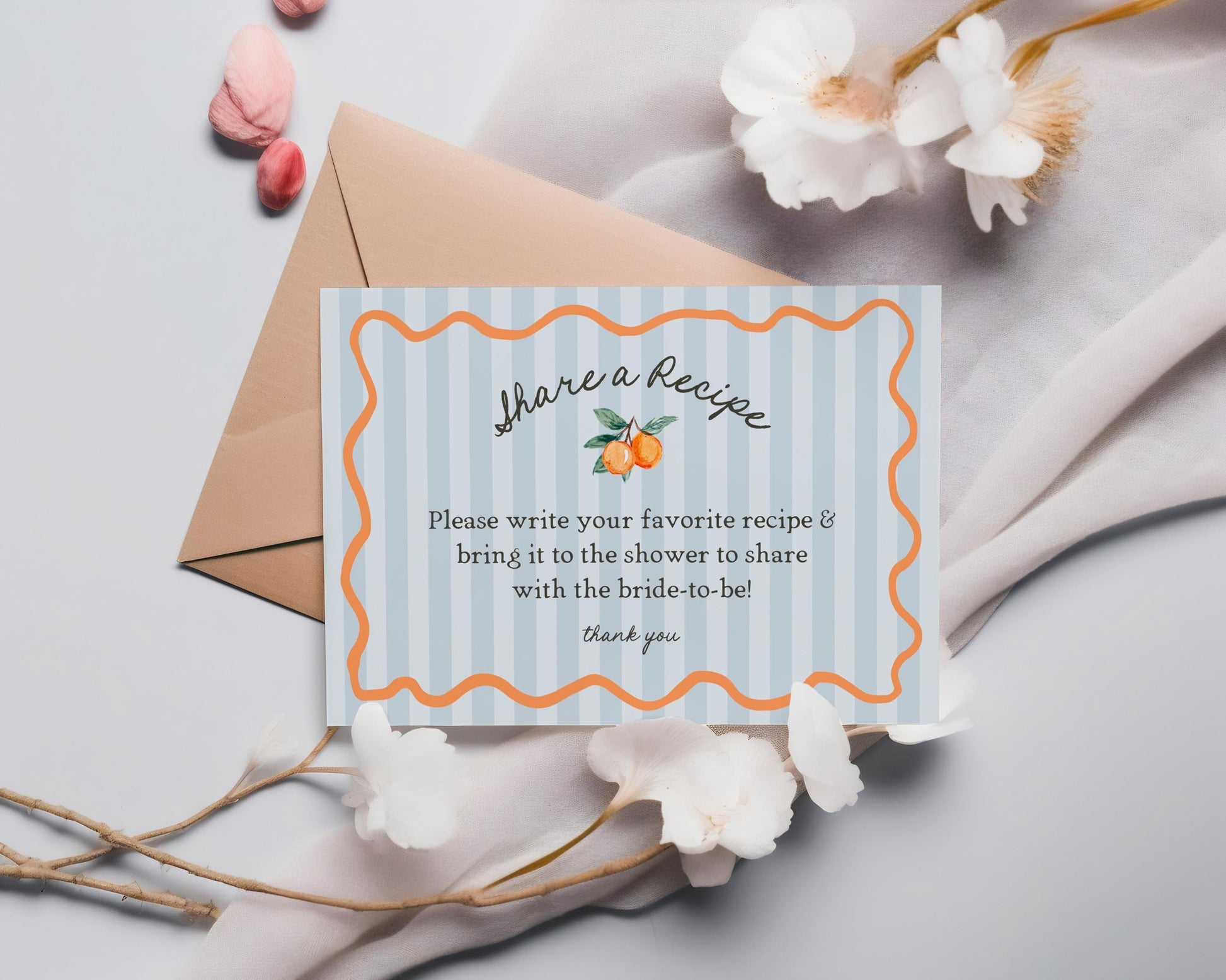 Blue Cutie Recipe Card Bridal Shower Template, Main Squeeze Bridal Brunch for Summer Bridal Shower, Retro Summer Engagement Party WP1052