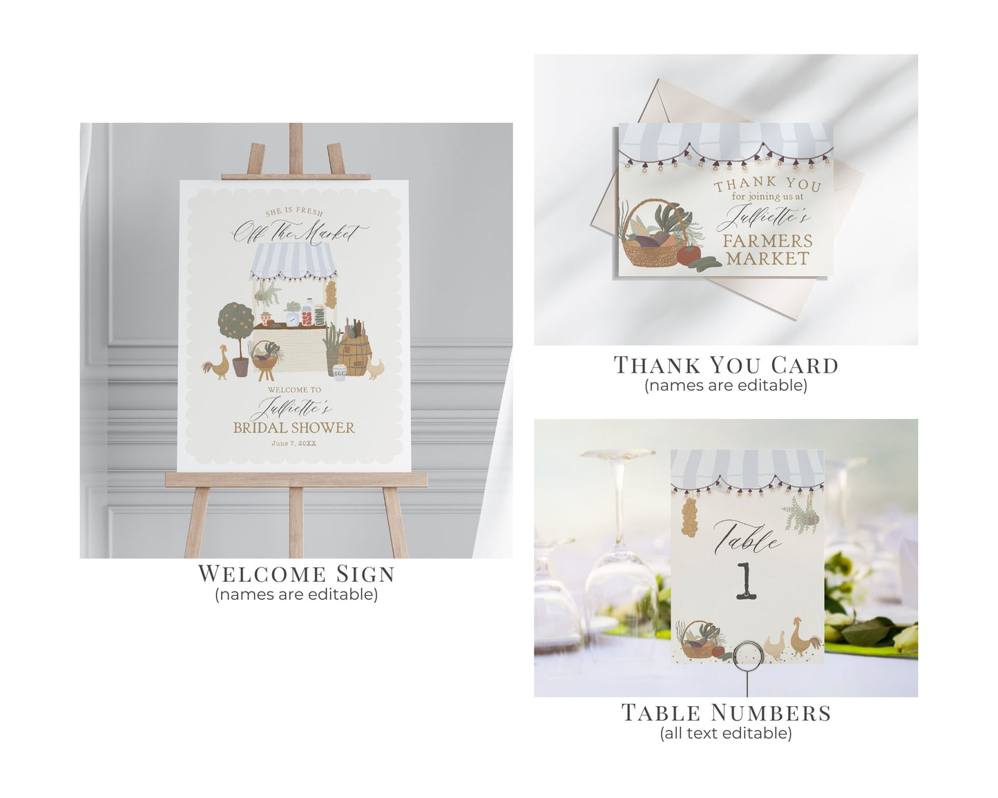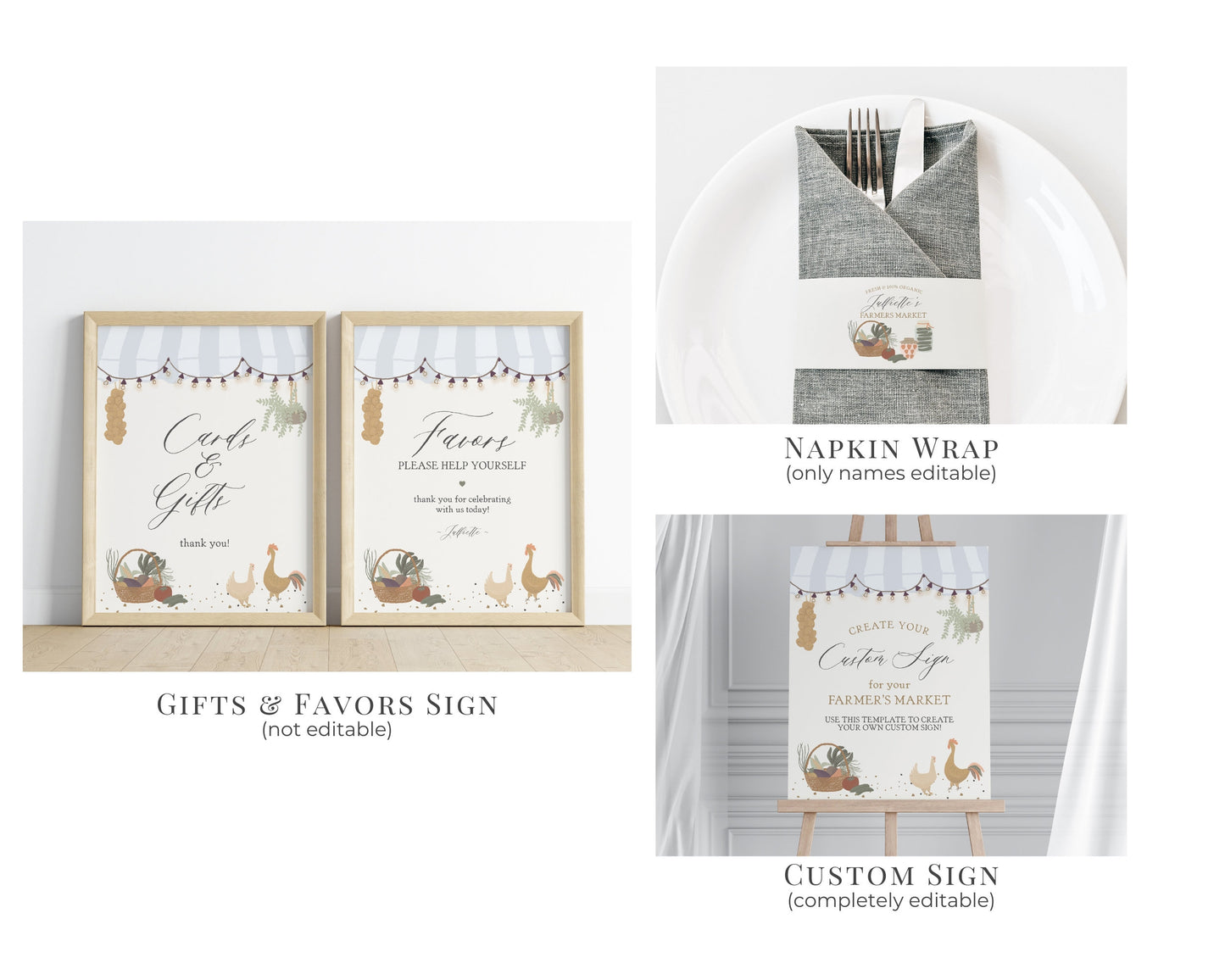She is Fresh Off The Market! Elevate your event with the authentic charm of an outing at your local Farmers Market. This collection features an adorable blue farmers market stand accented with market-fresh treasures. A party brimming with farm-fresh delights and the spirit of community.