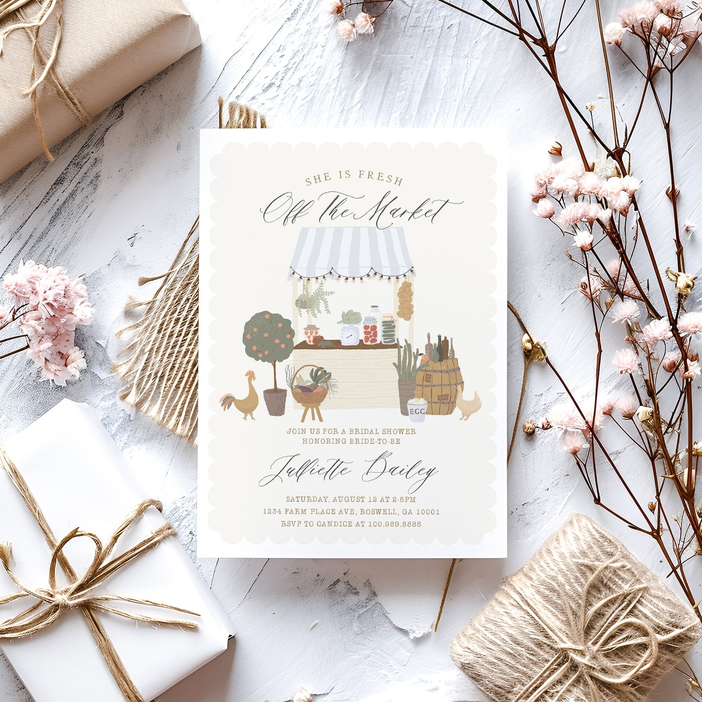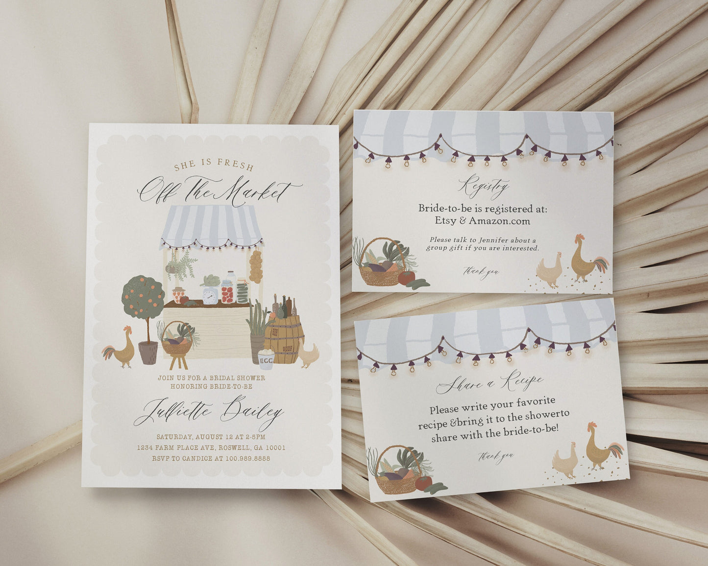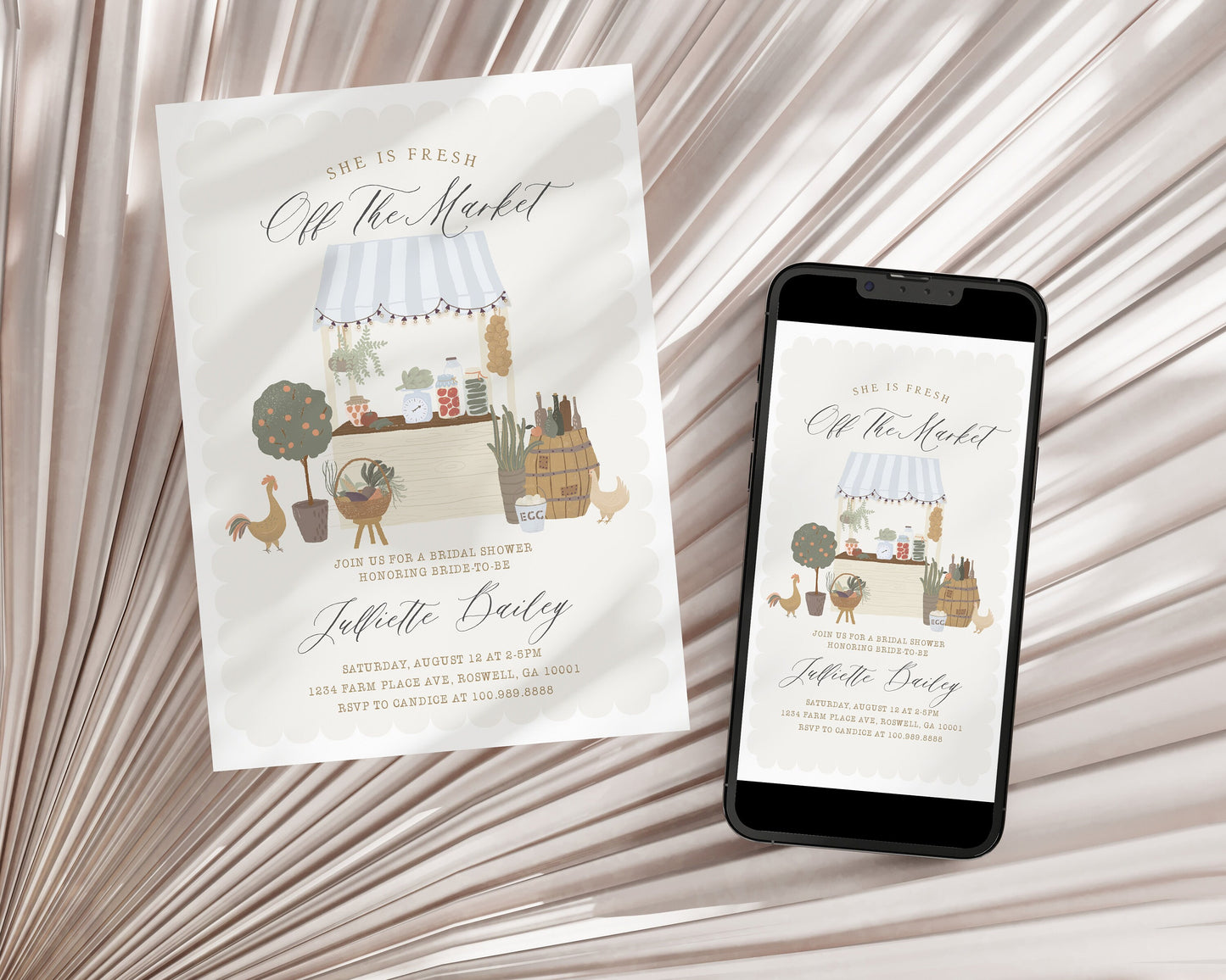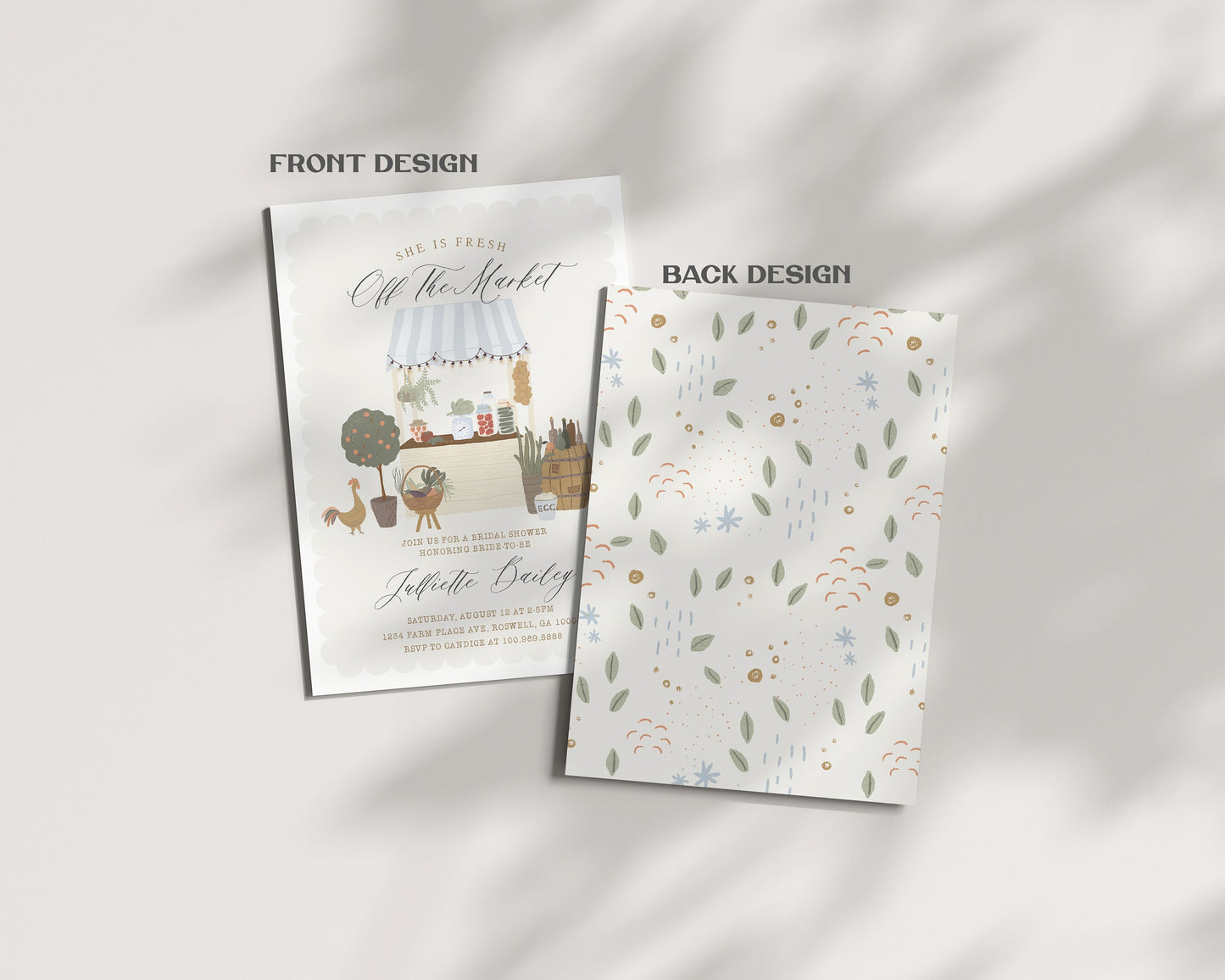 Blue Farmers Market Bridal Shower Invitation Printable Template