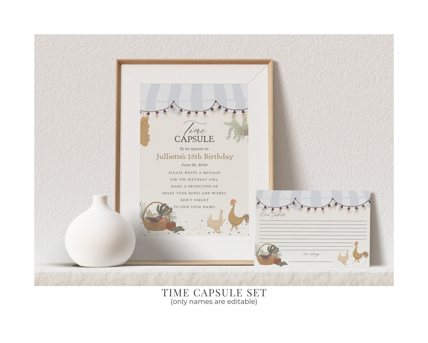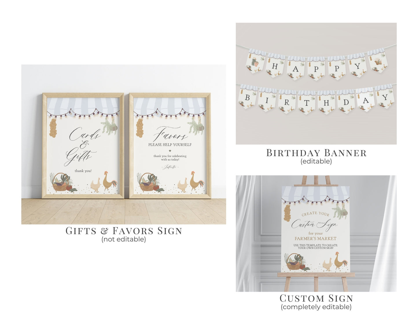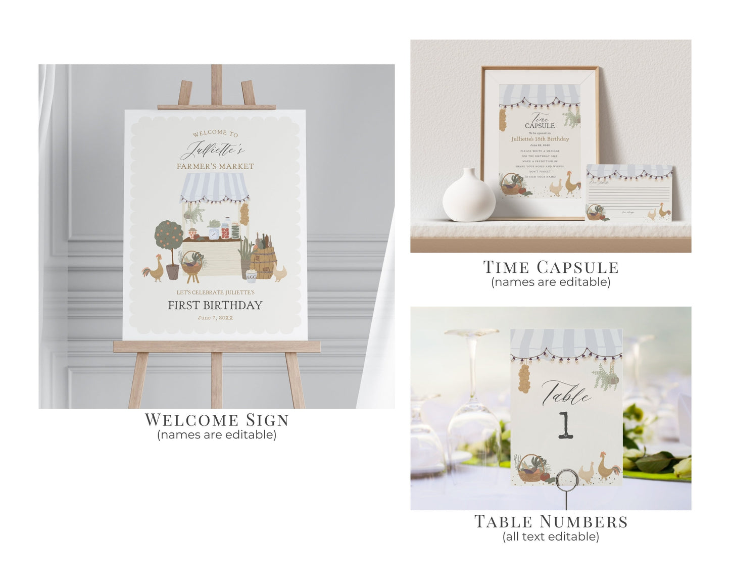 It's a One Day Only, Farmers Market Birthday. Elevate your event with the authentic charm of an outing at your local Farmers Market. This collection features an adorable blue farmers market stand accented with market-fresh treasures. A party brimming with farm-fresh delights and the spirit of community.