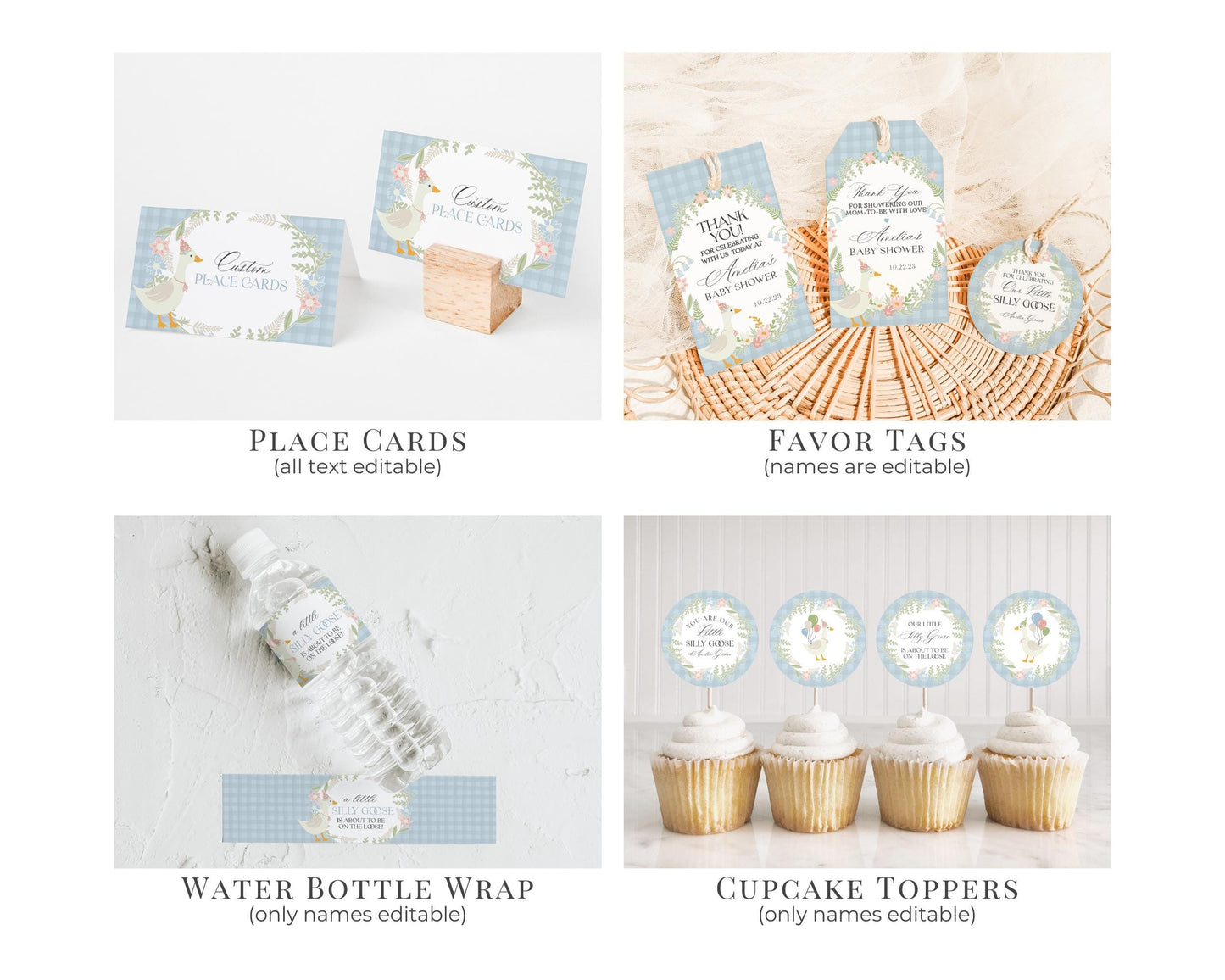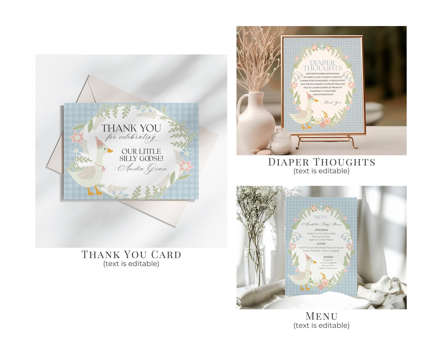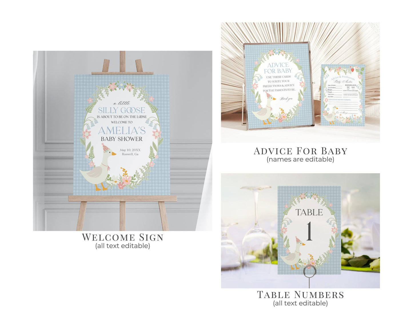 Blue Floral Silly Goose Baby Shower Bundle Printable Template