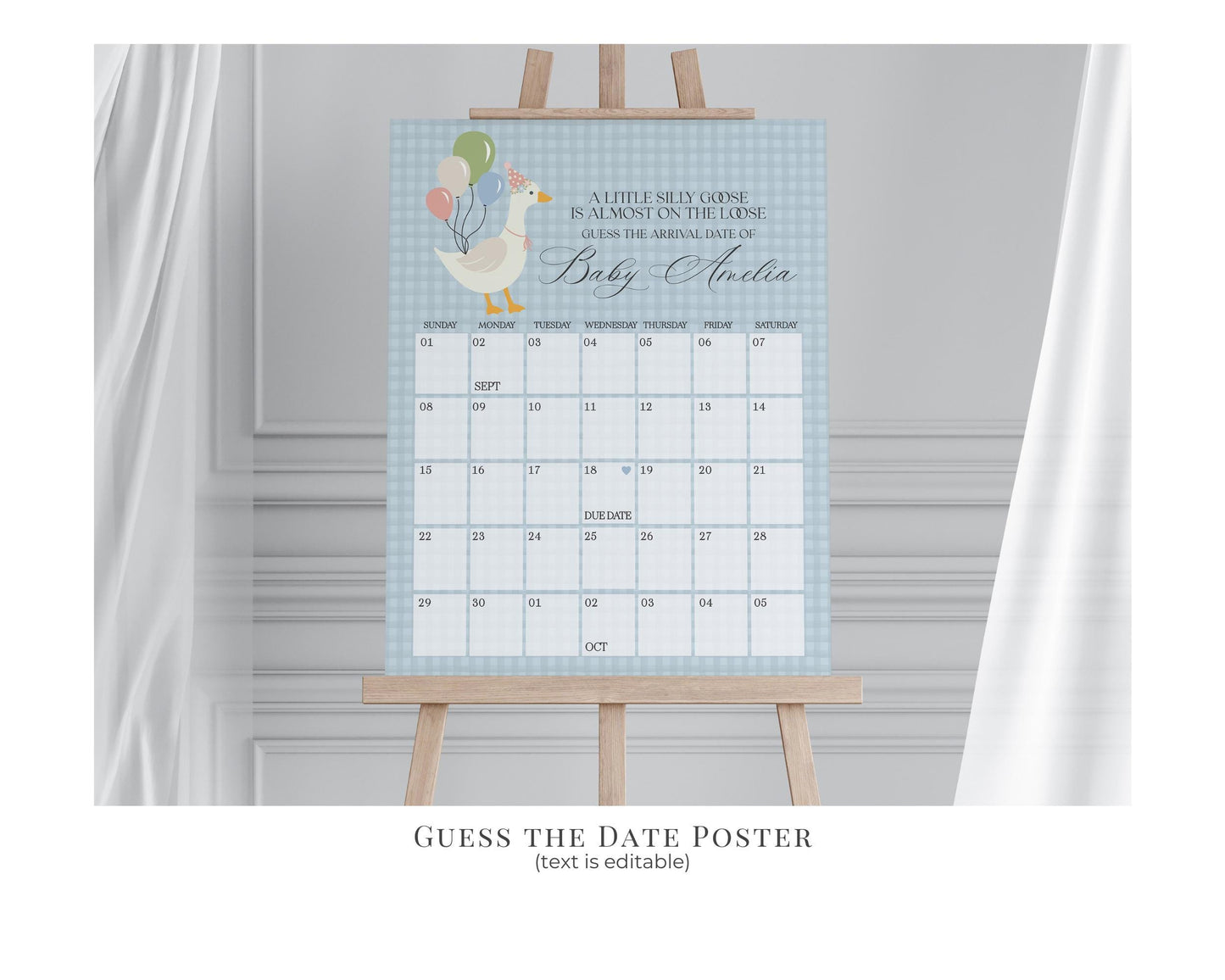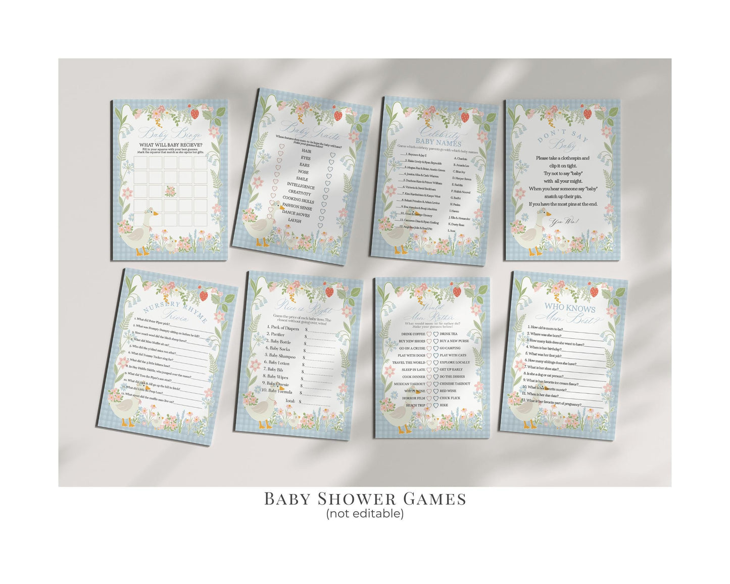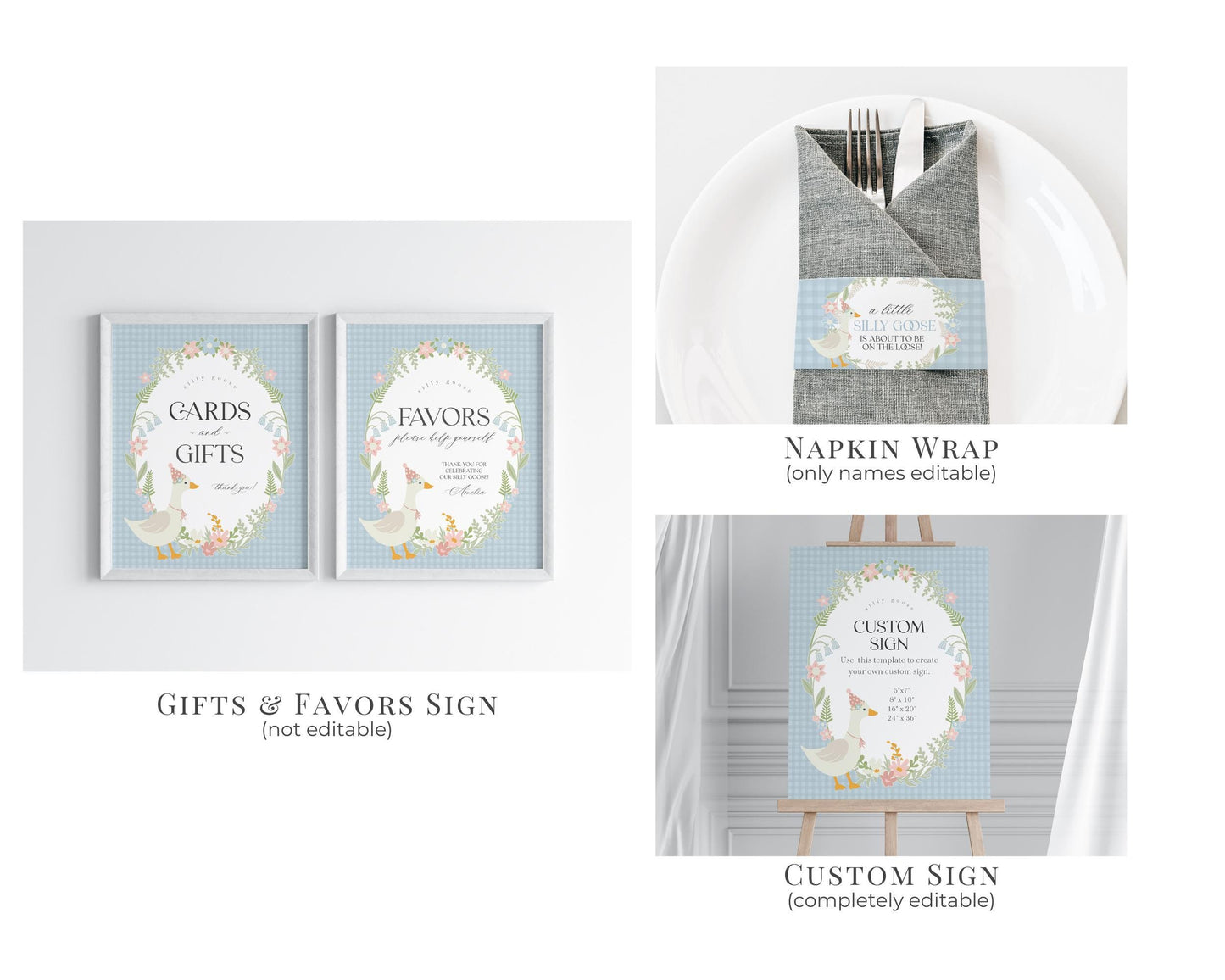 Blue Floral Silly Goose Baby Shower Bundle Printable Template