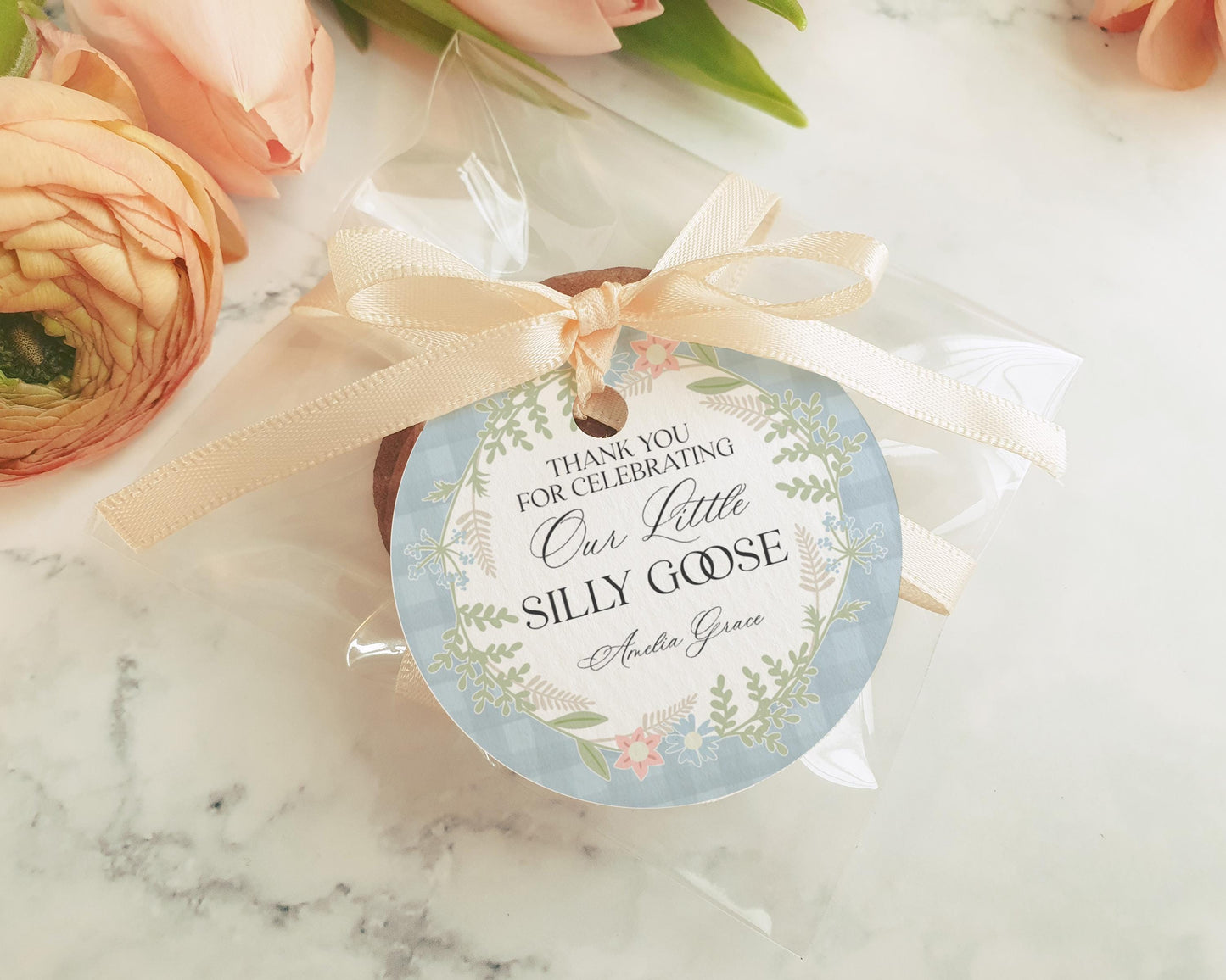 Blue Floral Silly Goose Baby Shower Favor Tags Printable Template
