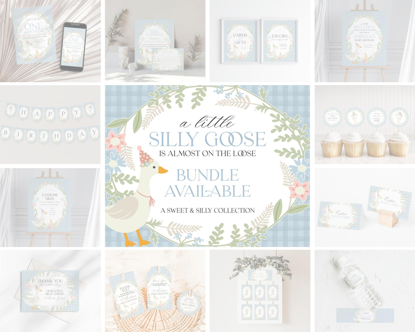 Blue Floral Silly Goose First Birthday Bundle Printable Template