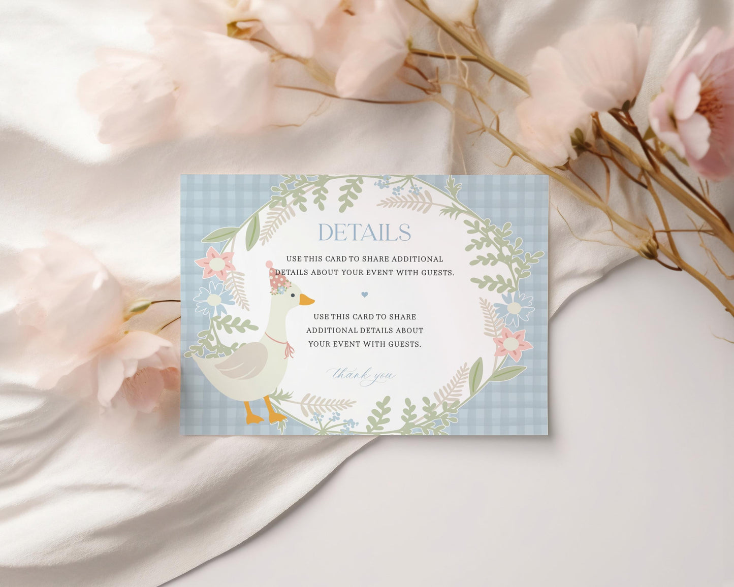 Blue Floral Silly Goose Cards & Gifts and Favors Sign Printable Template, Little Duck Girl Birthday, Pastel Gingham Baby Sprinkle WP1023
