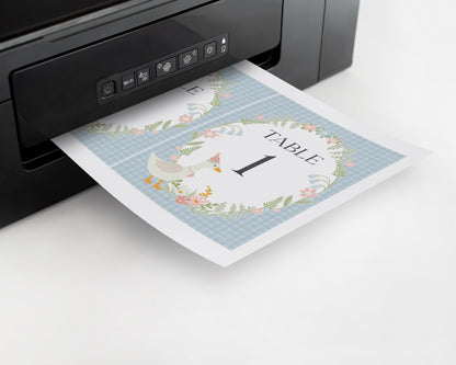 Blue Floral Silly Goose Table Number Cards Printable Template