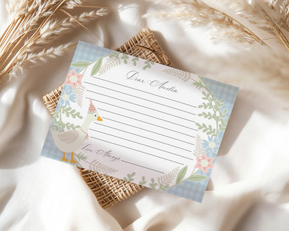 Blue Floral Silly Goose Thank You Card Printable Template, Little Duck Theme Girl Birthday Party, Pastel Gingham Baby Shower Sprinkle WP1023