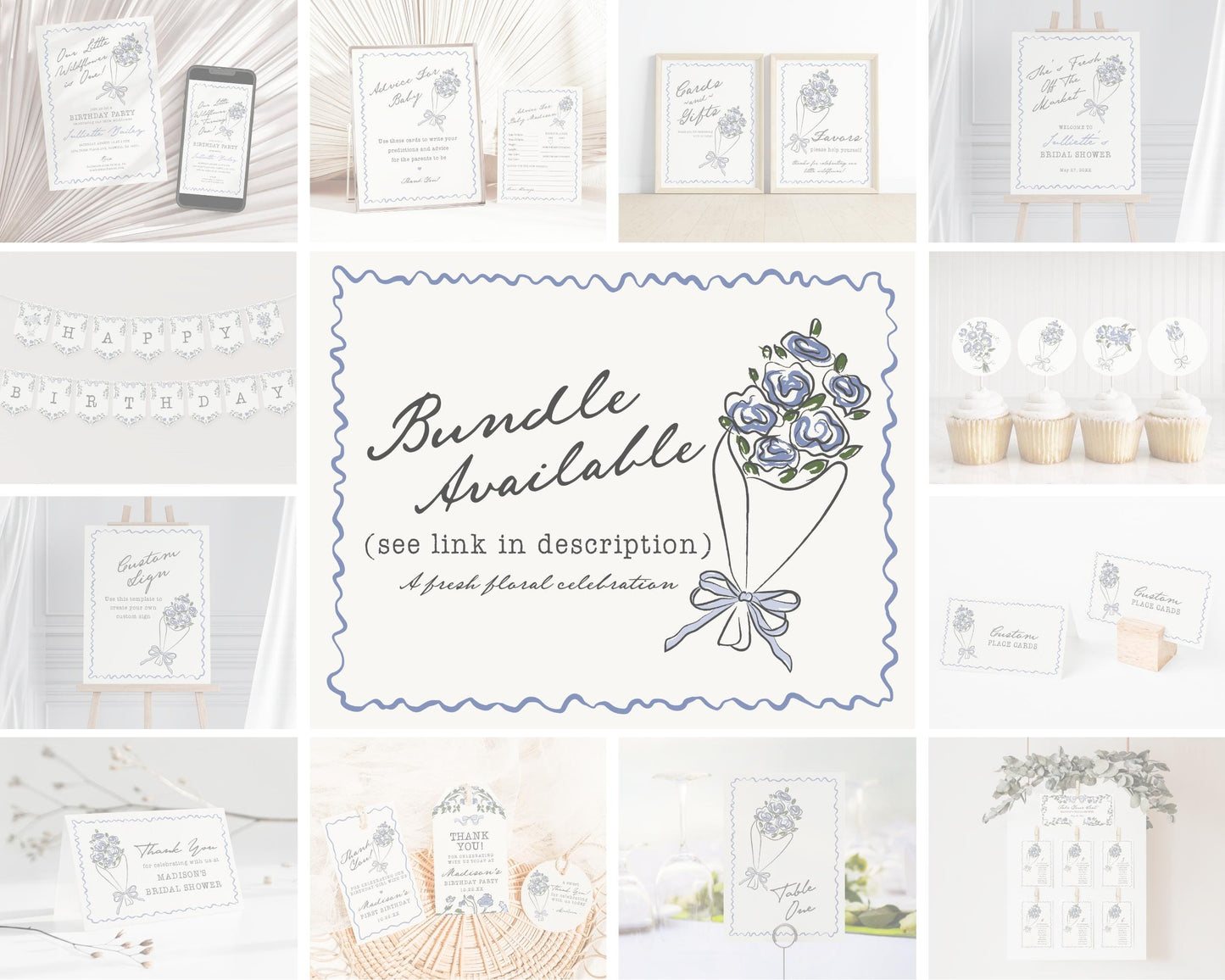 Blue Flower Market Birthday Bundle Template