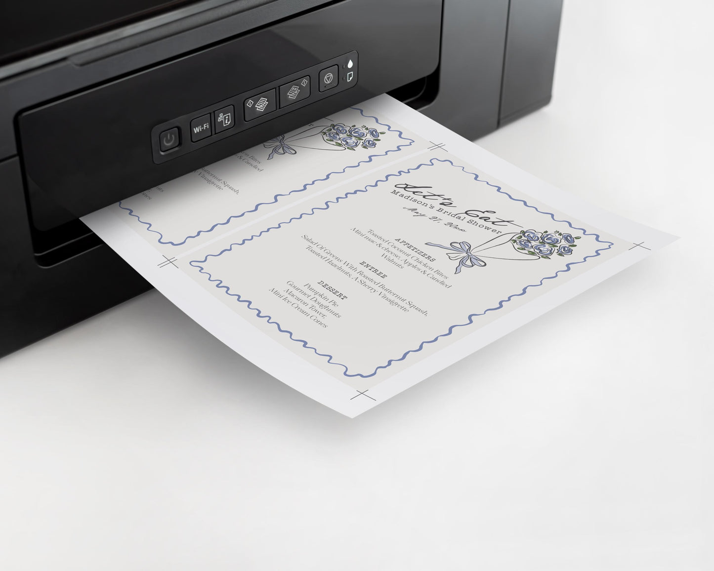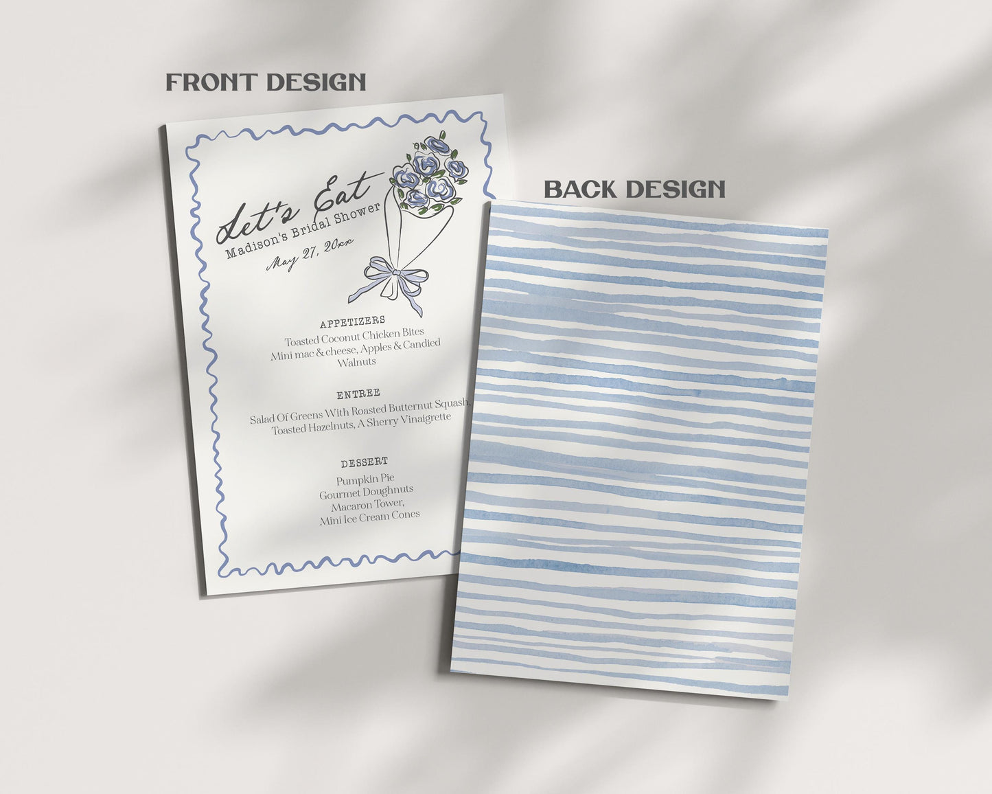 Blue Flower Market Menu Template, Market Bridal shower, Wildflower Birthday Party, Baby in Bloom Baby Shower, Blue Coquette Floral WP1045