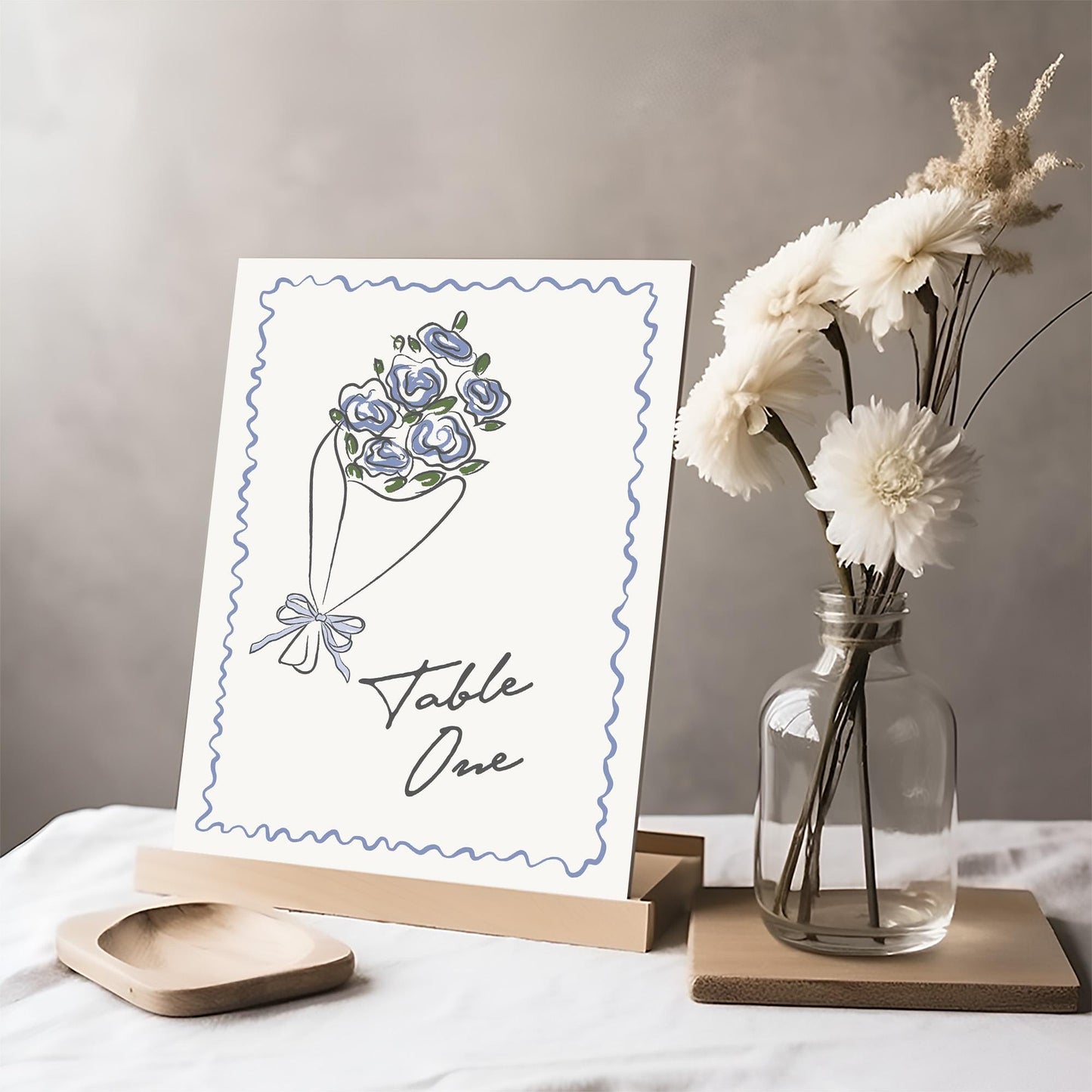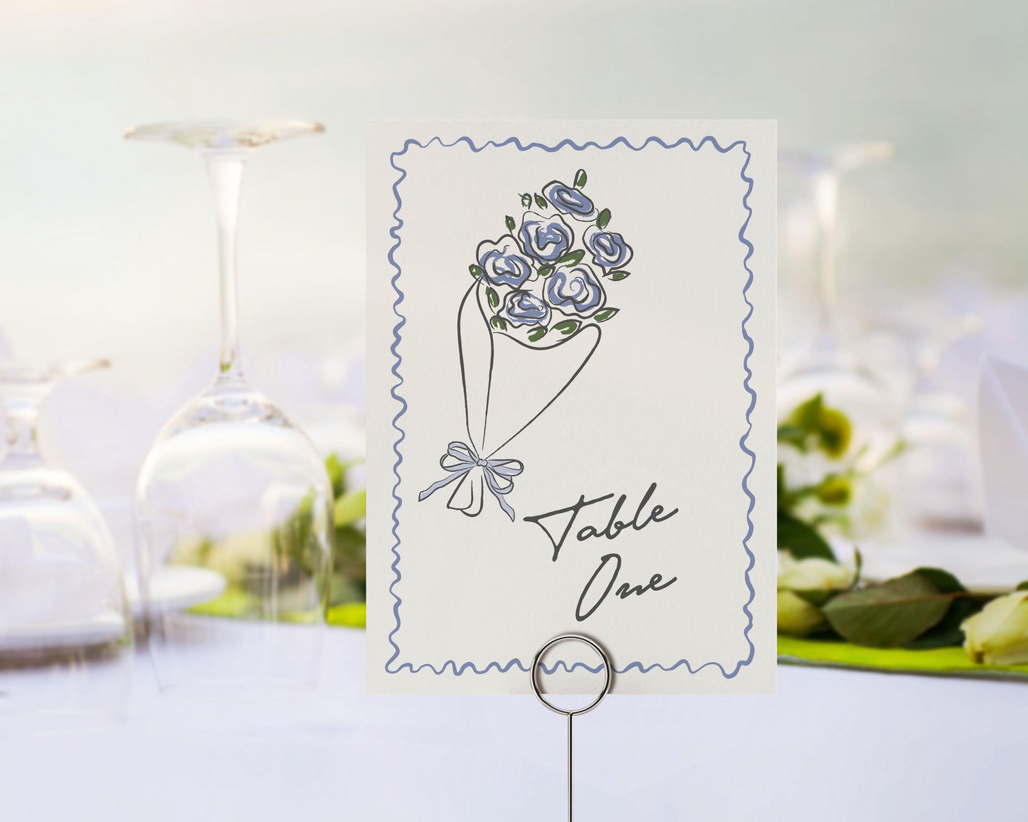 Blue Flower Market Table Number Cards Template, Fresh Off The Market Bridal Brunch With Bride, Hand Drawn Pink Coquette Floral Doodle WP1045