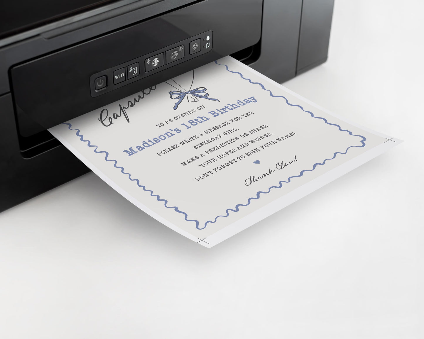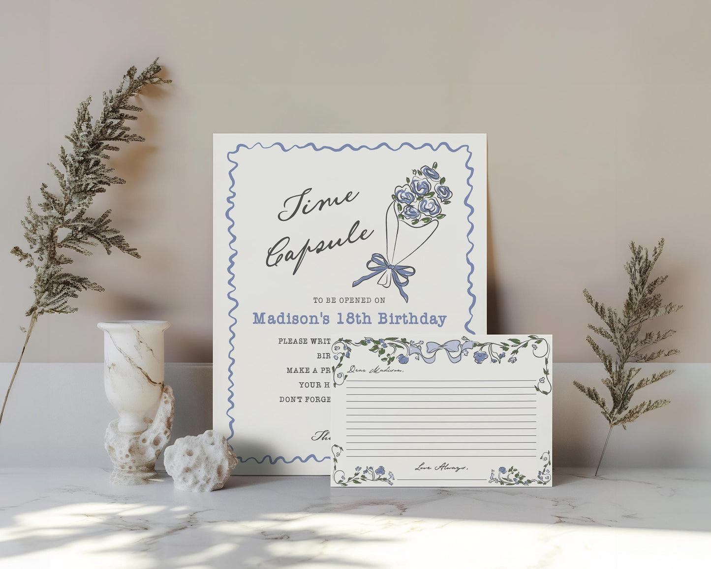 Blue Flower Market Time Capsule Template, Little Wildflower 1st Birthday Party for Girl, Hand Drawn Blue Coquette Floral Doodle WP1045