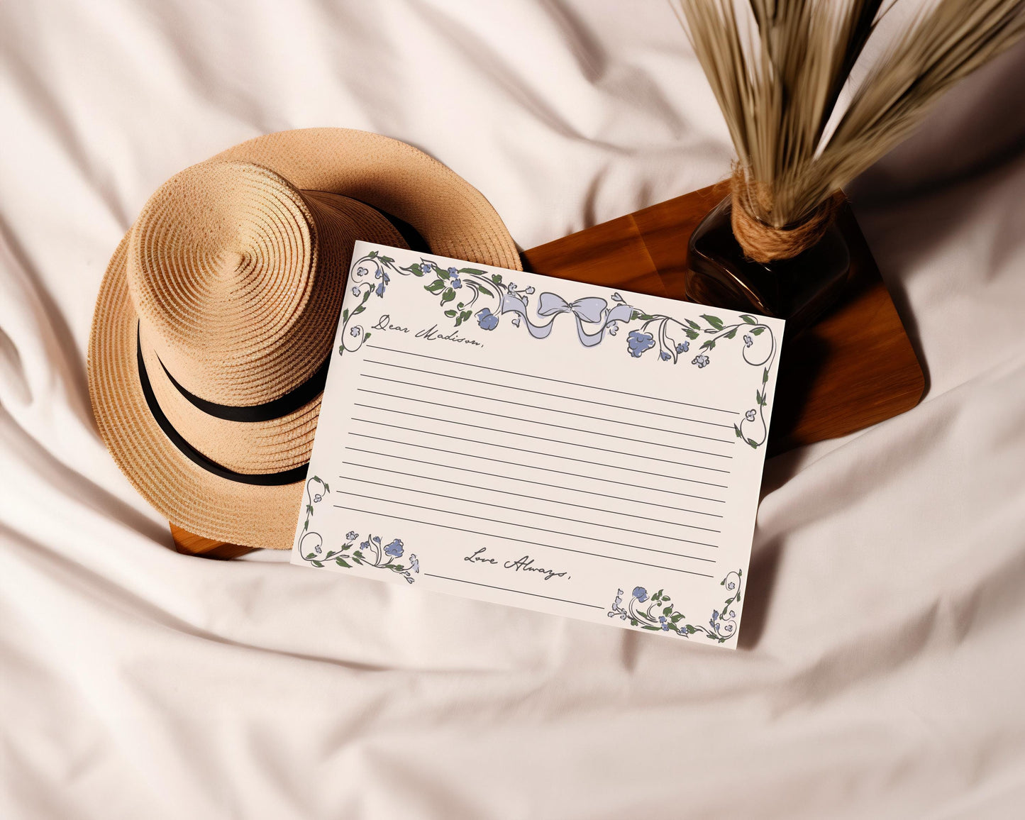 Blue Flower Market Recipe Card Template Bridal Shower, Fresh Off The Market Bridal Brunch With Bride, Hand Drawn Blue Coquette Floral WP1045