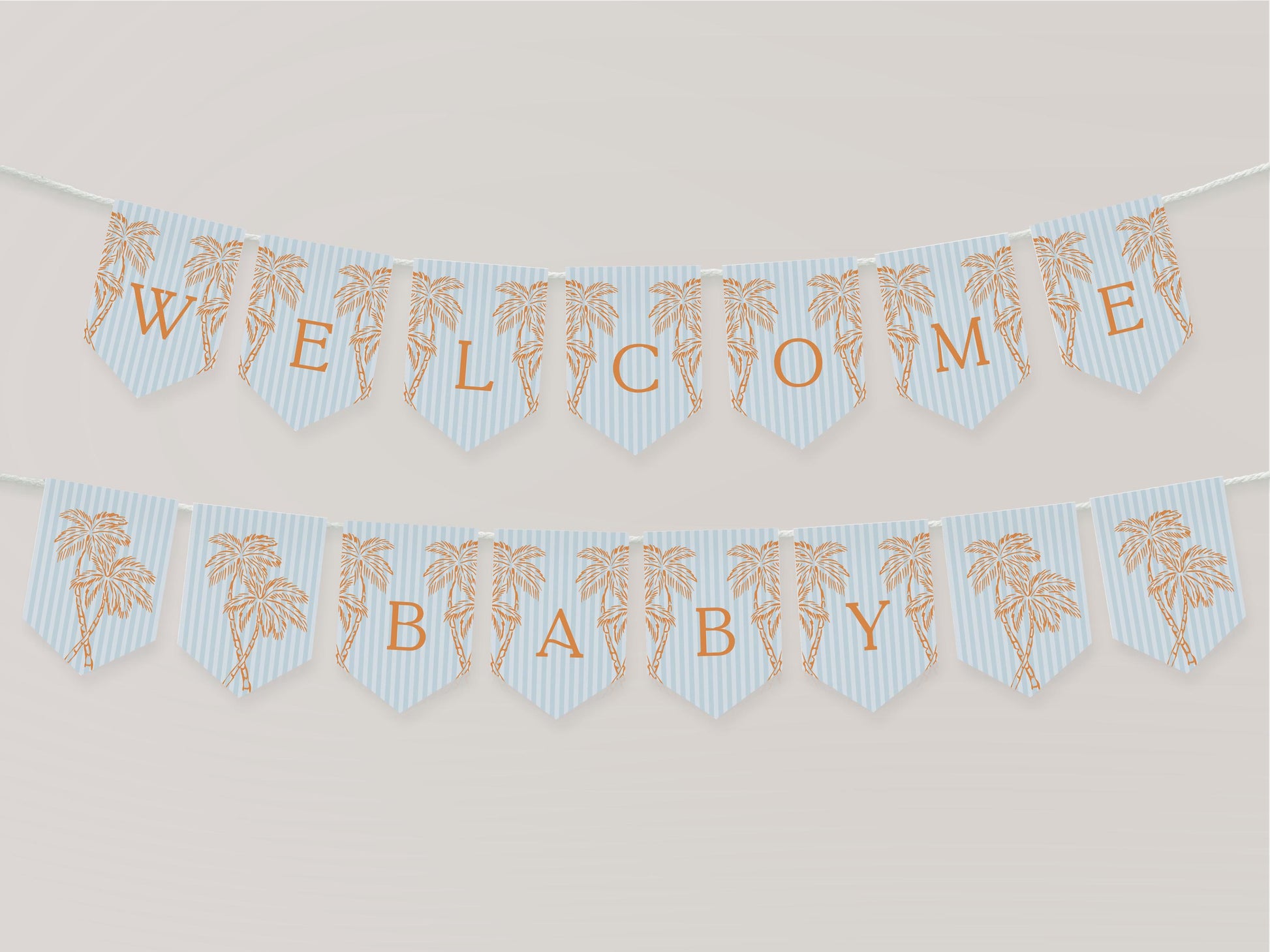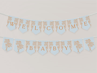 Blue Palm Springs Baby Shower Welcome Sign Template