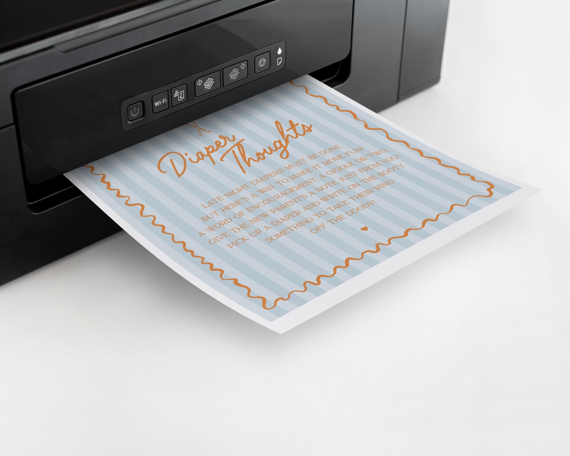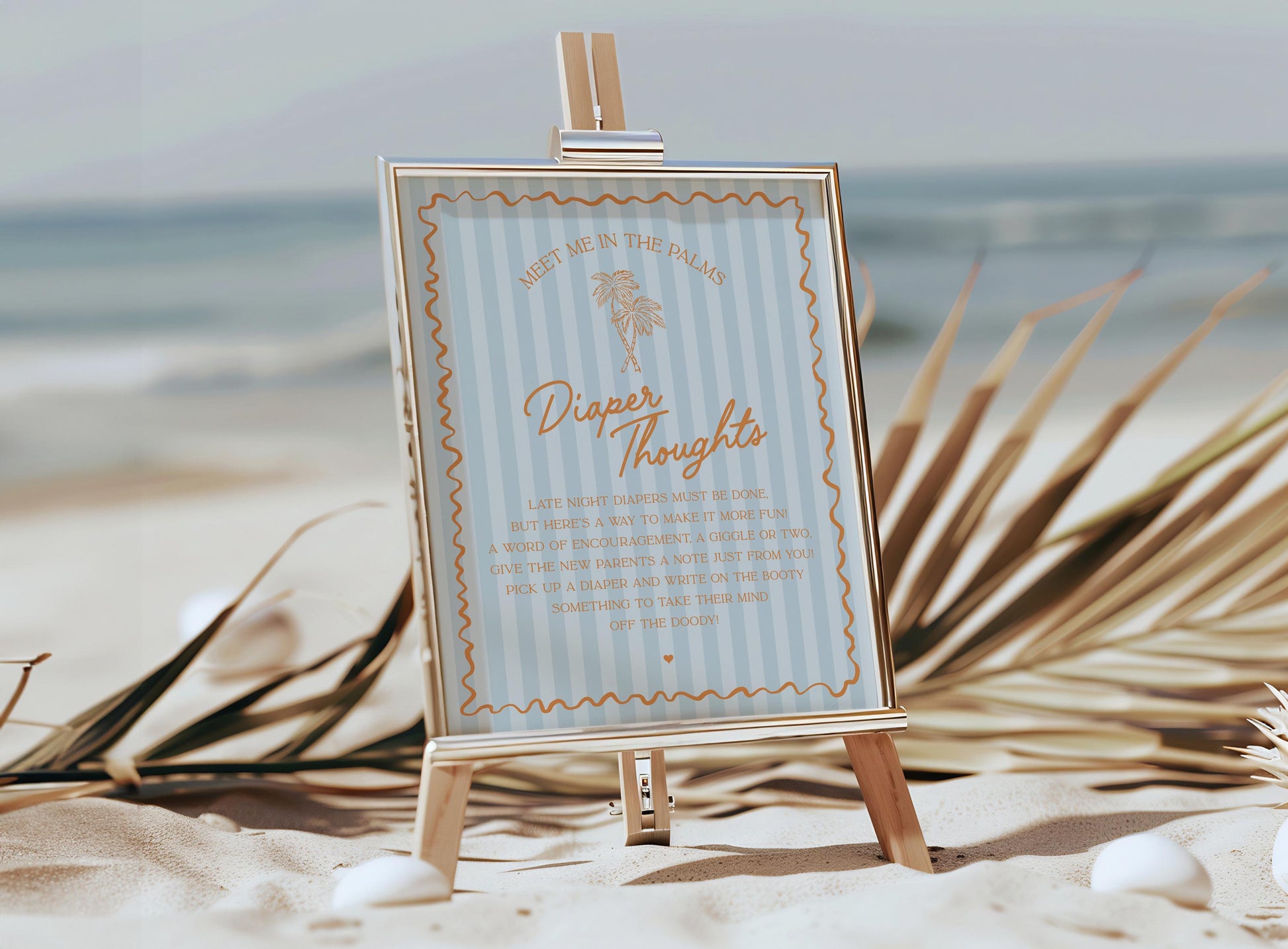 Blue Palm Springs Baby Shower Diaper Thoughts Template