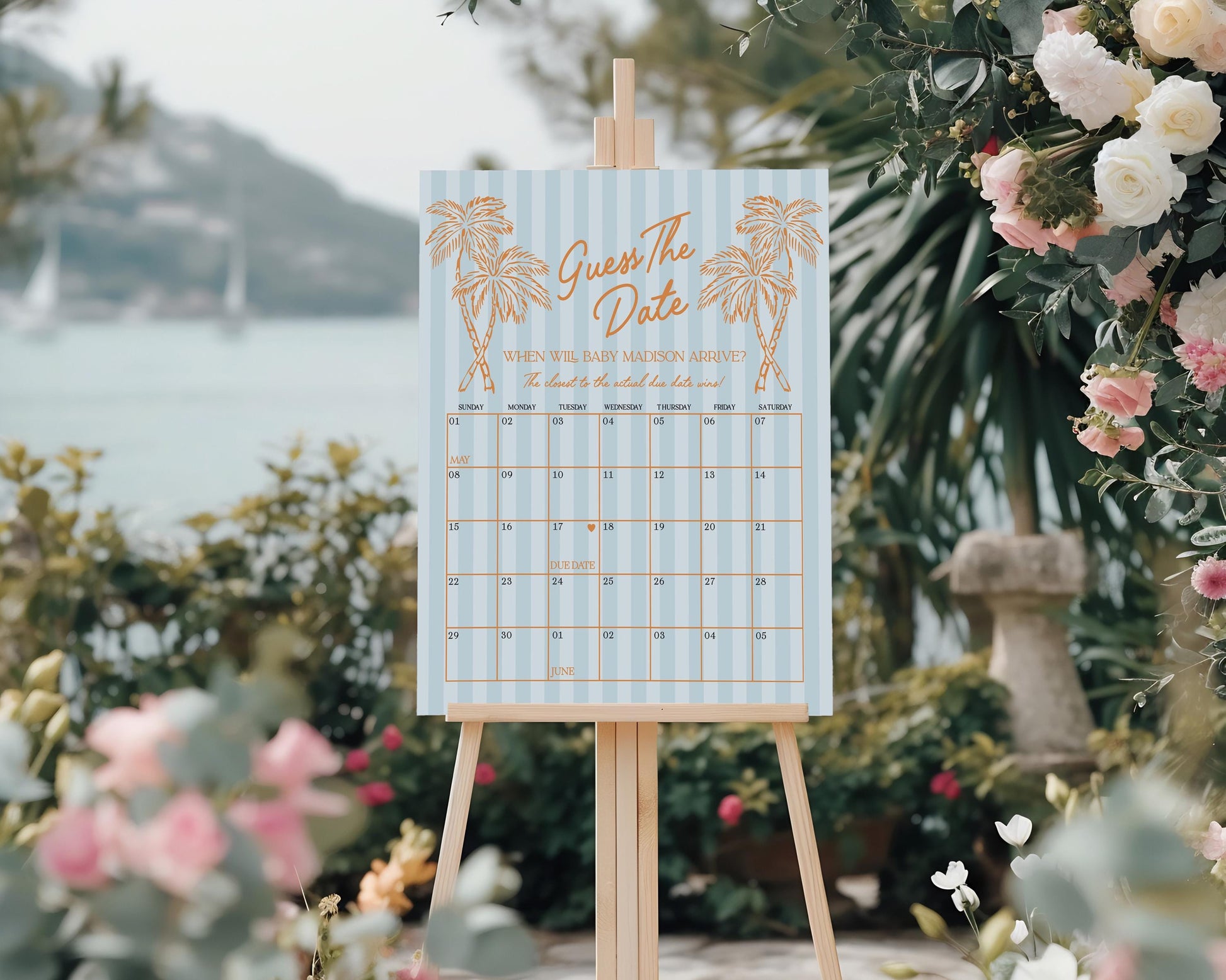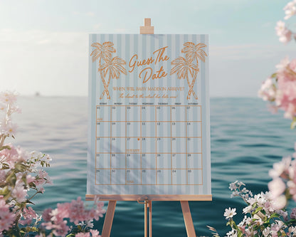 Blue Palm Springs Baby Shower Guess the Date Game Template