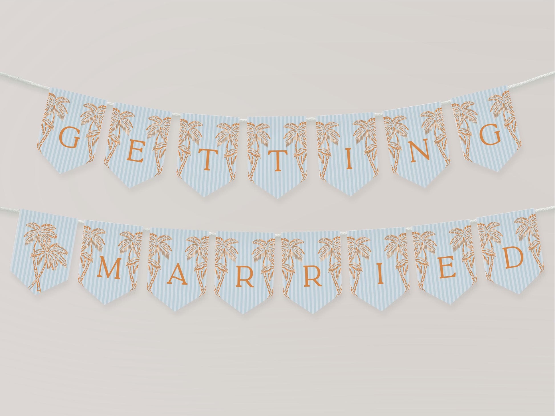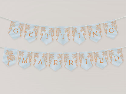Blue Palm Springs Bridal Shower Banner Template, Vintage Palm Tree Beach Cabana Bridal Brunch, Retro Bachelorette Pastel Pool Party WP1048