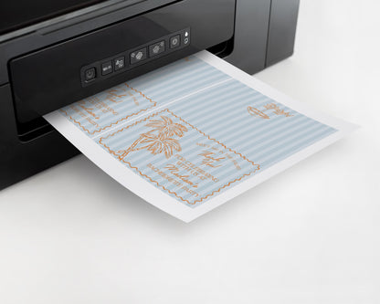 Blue Palm Springs Bridal Shower Favor Tags Template