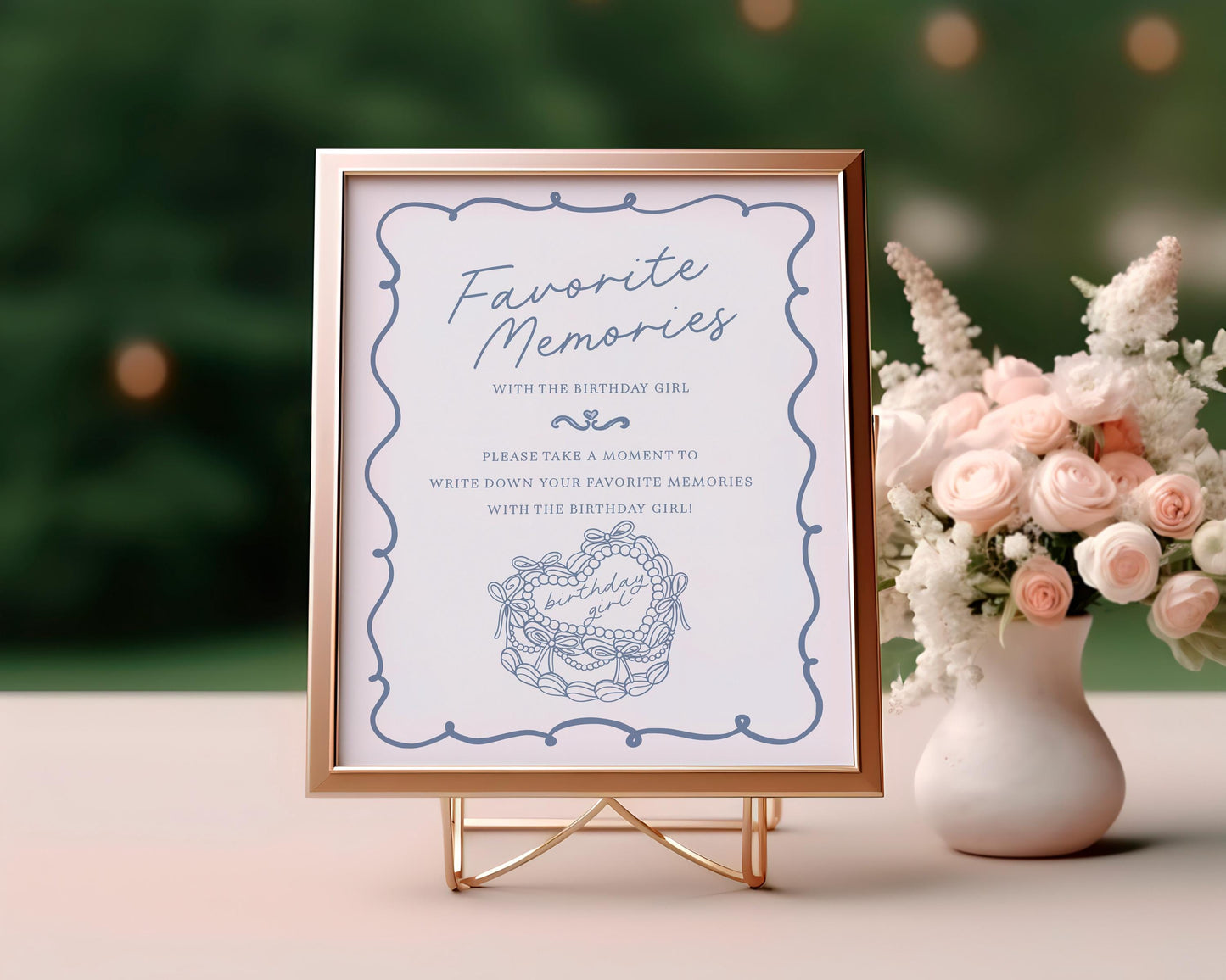 Blue Retro Coquette Heart Cake Favorite Memories Birthday Girl Template