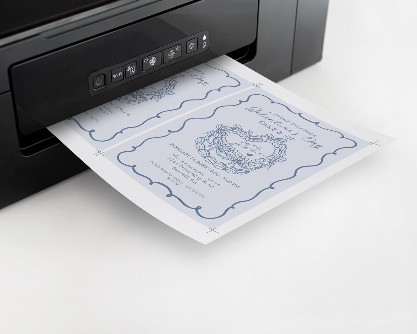 Blue Retro Coquette Heart Cake Galentine Party Invitation Template