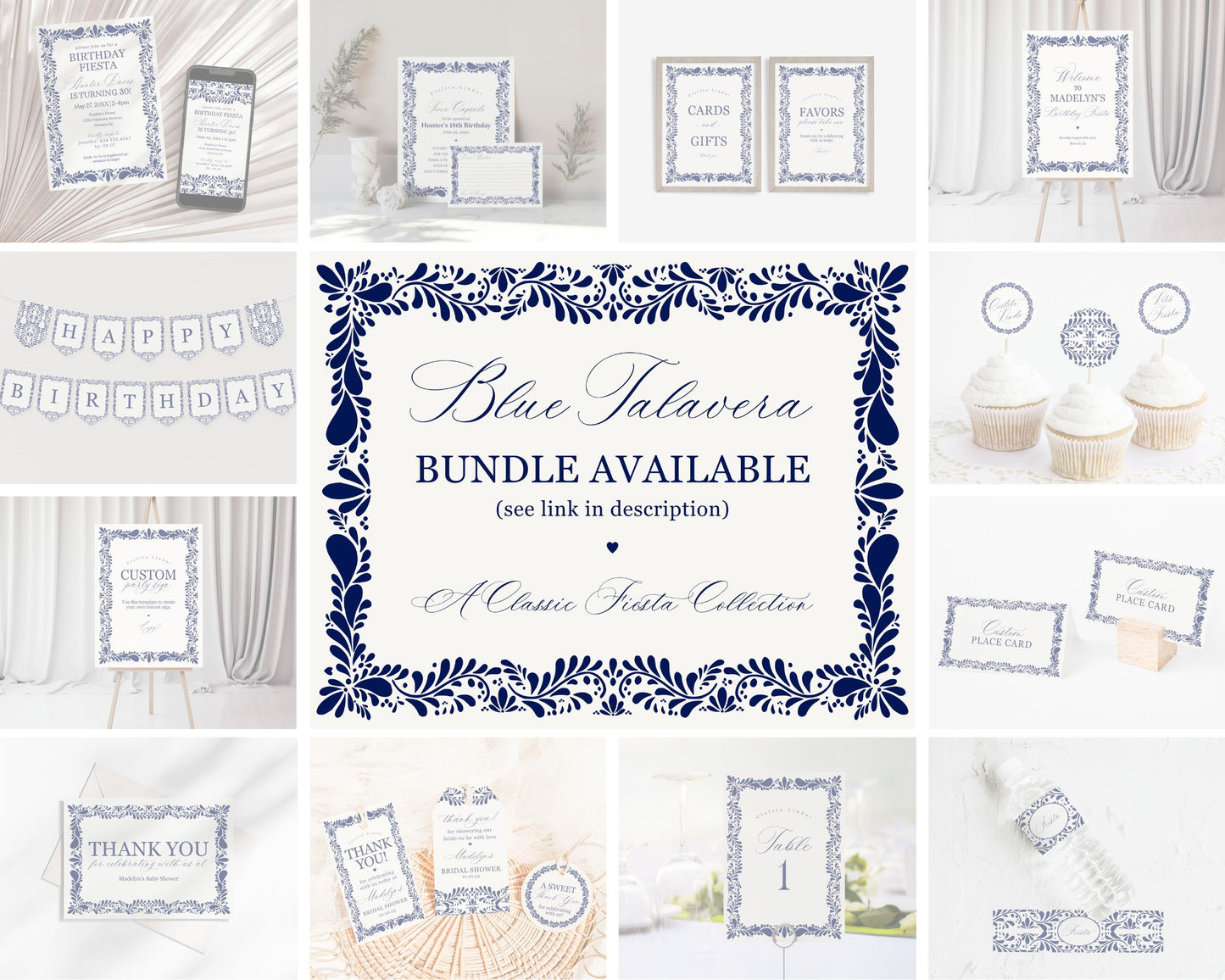 Blue Talavera Birthday Bundle Printable Template, Spanish Tile Mexican Birthday Fiesta, Papel Picado Birthday Party Decor WP1018