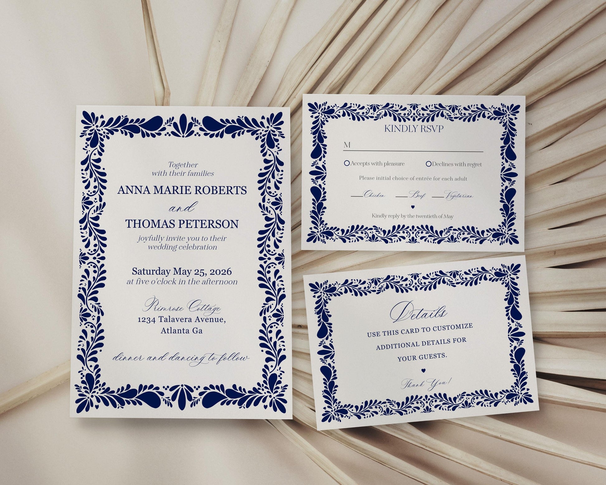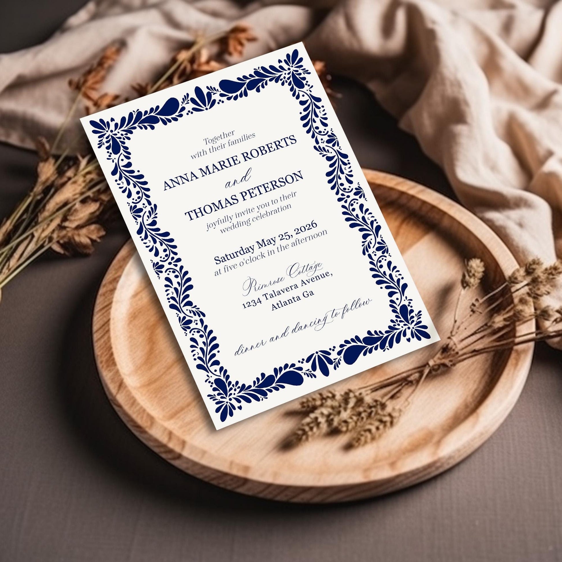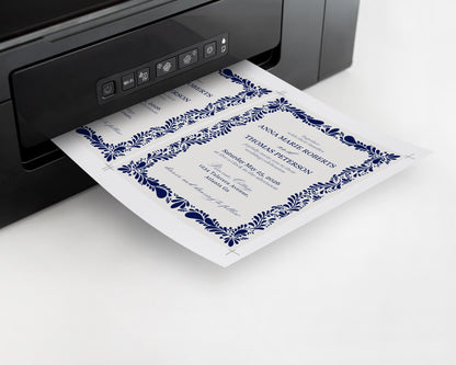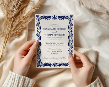 Blue Talavera Wedding Invitation Printable Template