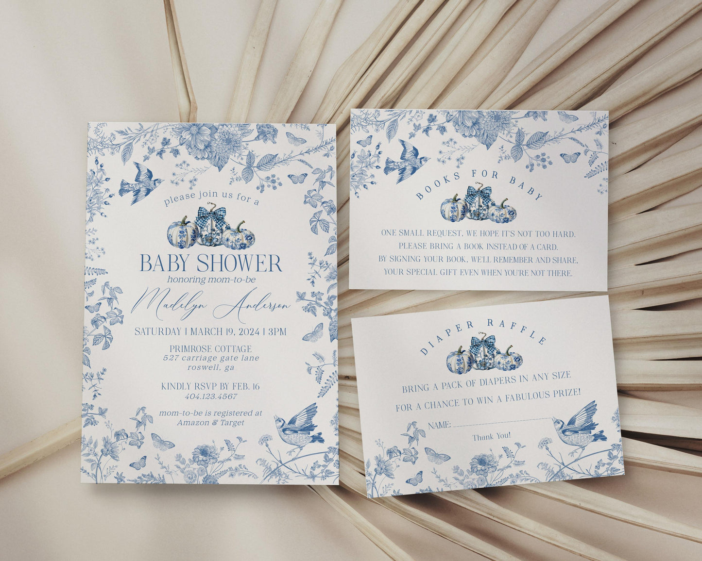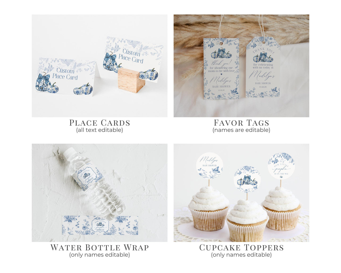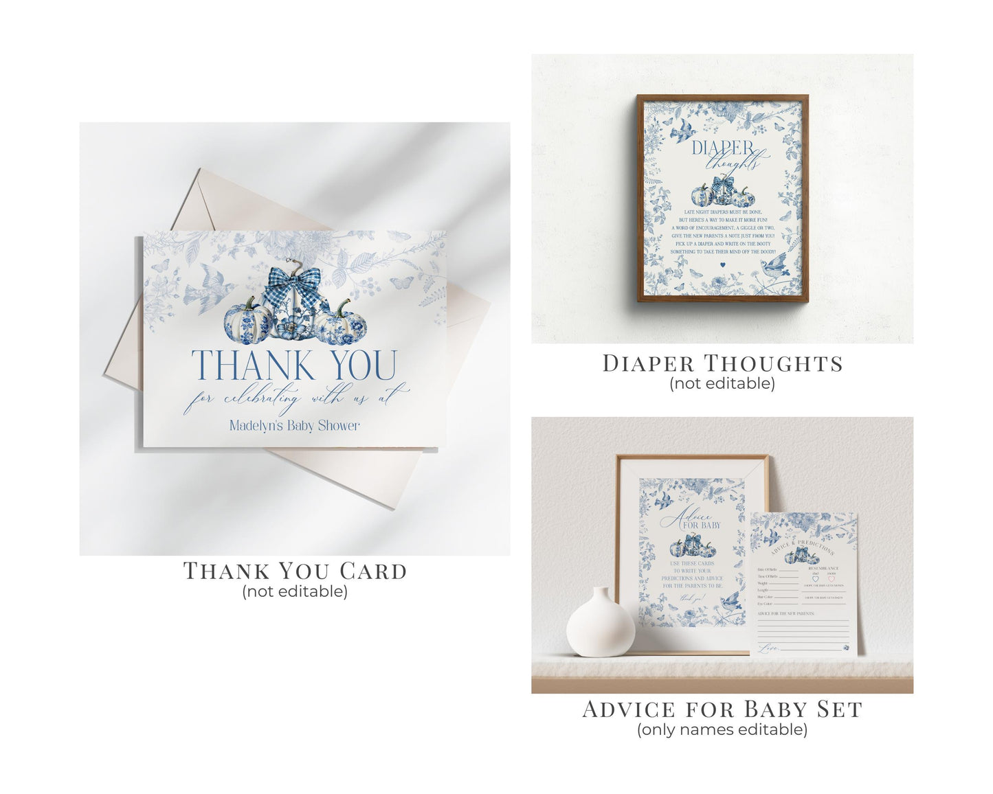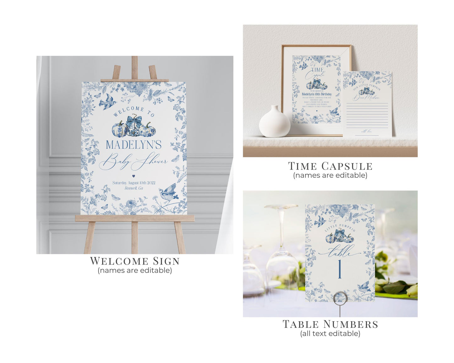 Blue Toile De Jouy Pumpkin Baby Shower Printable Bundle