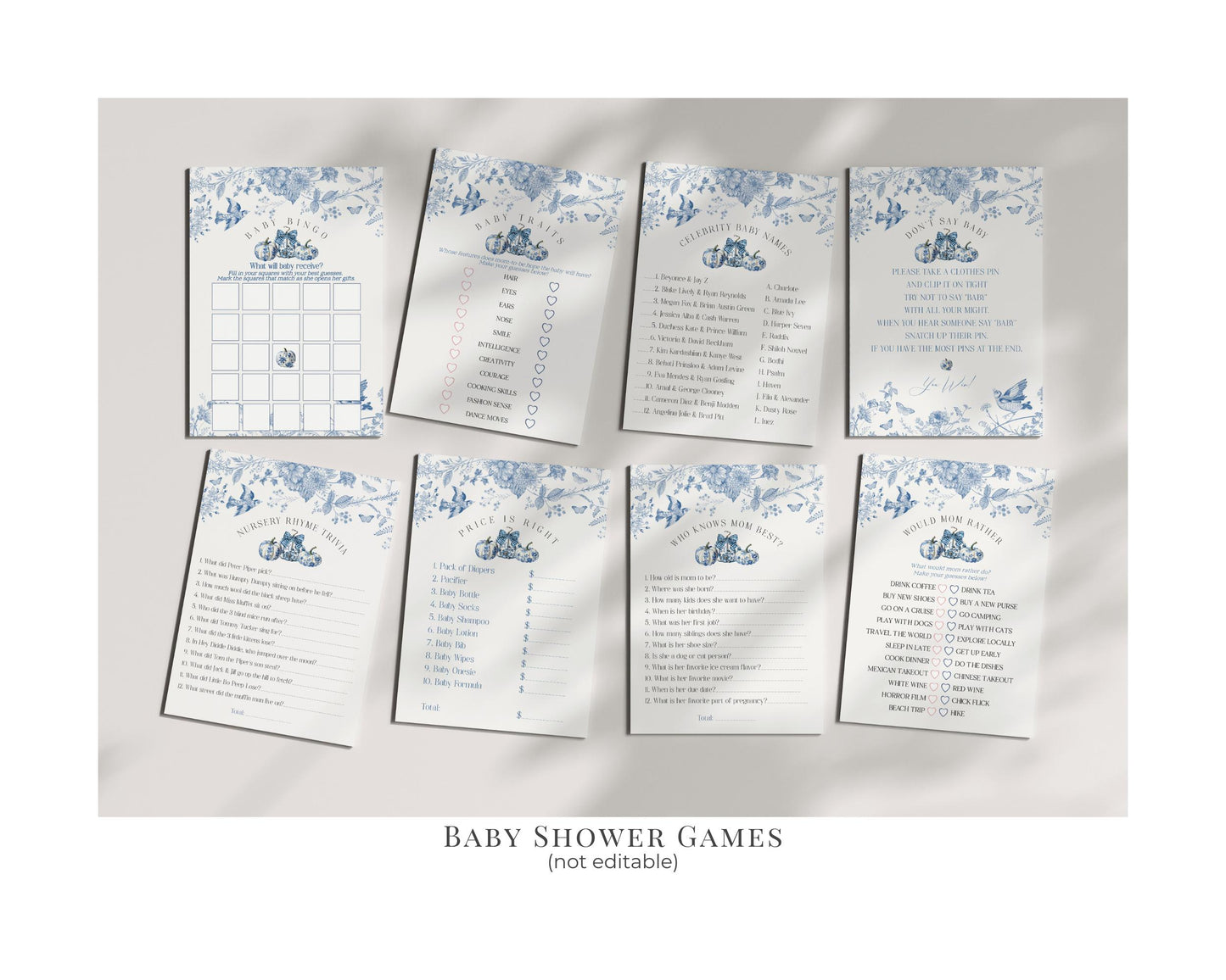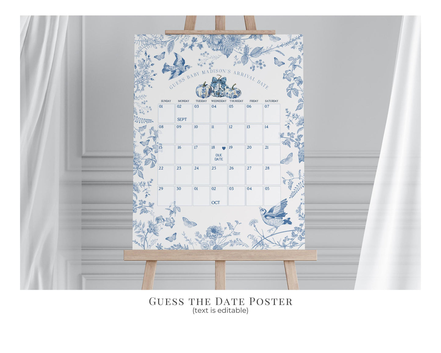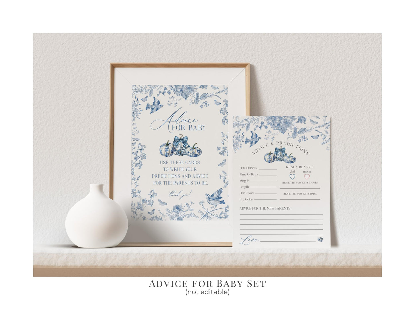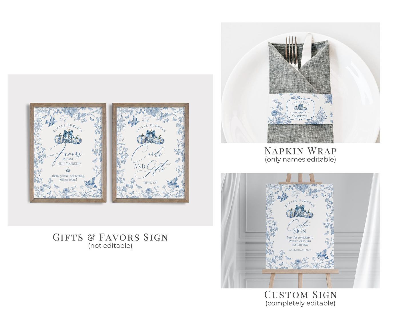 Blue Toile De Jouy Pumpkin Baby Shower Printable Bundle