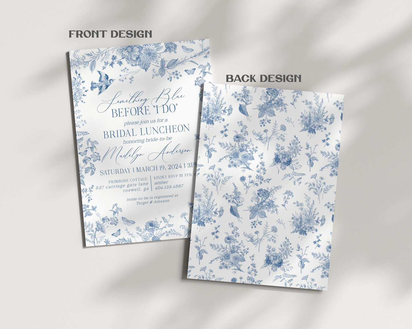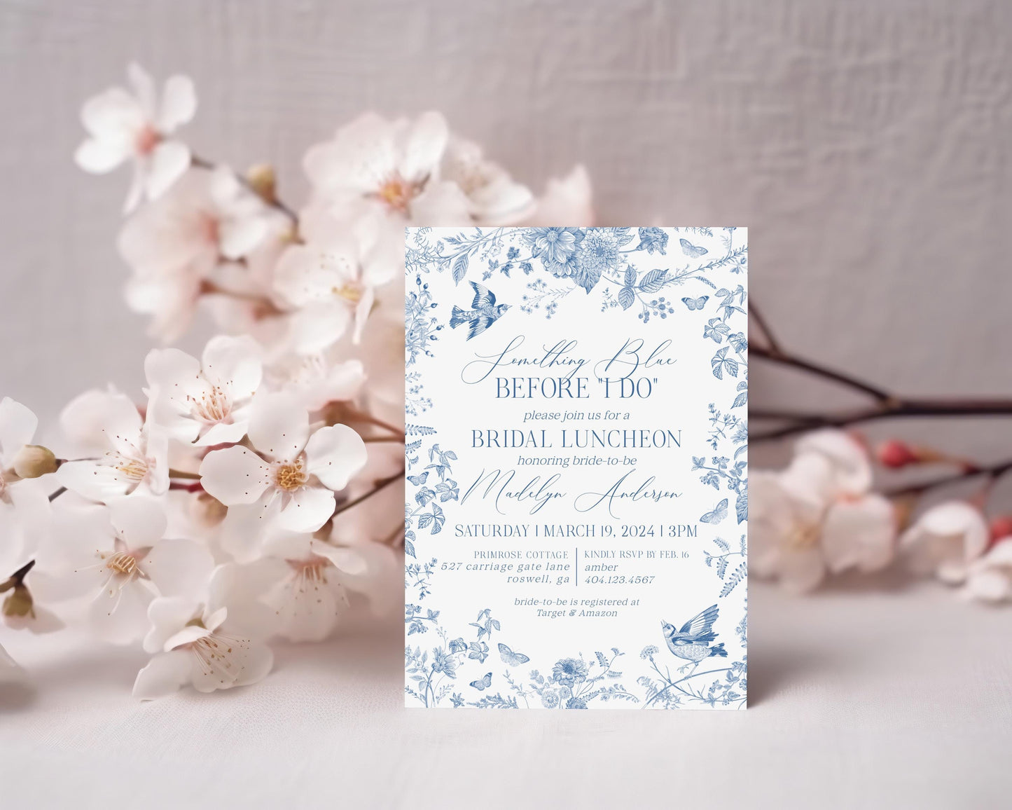 Blue Toile De Jouy Bridal Shower Invitation Printable Template
