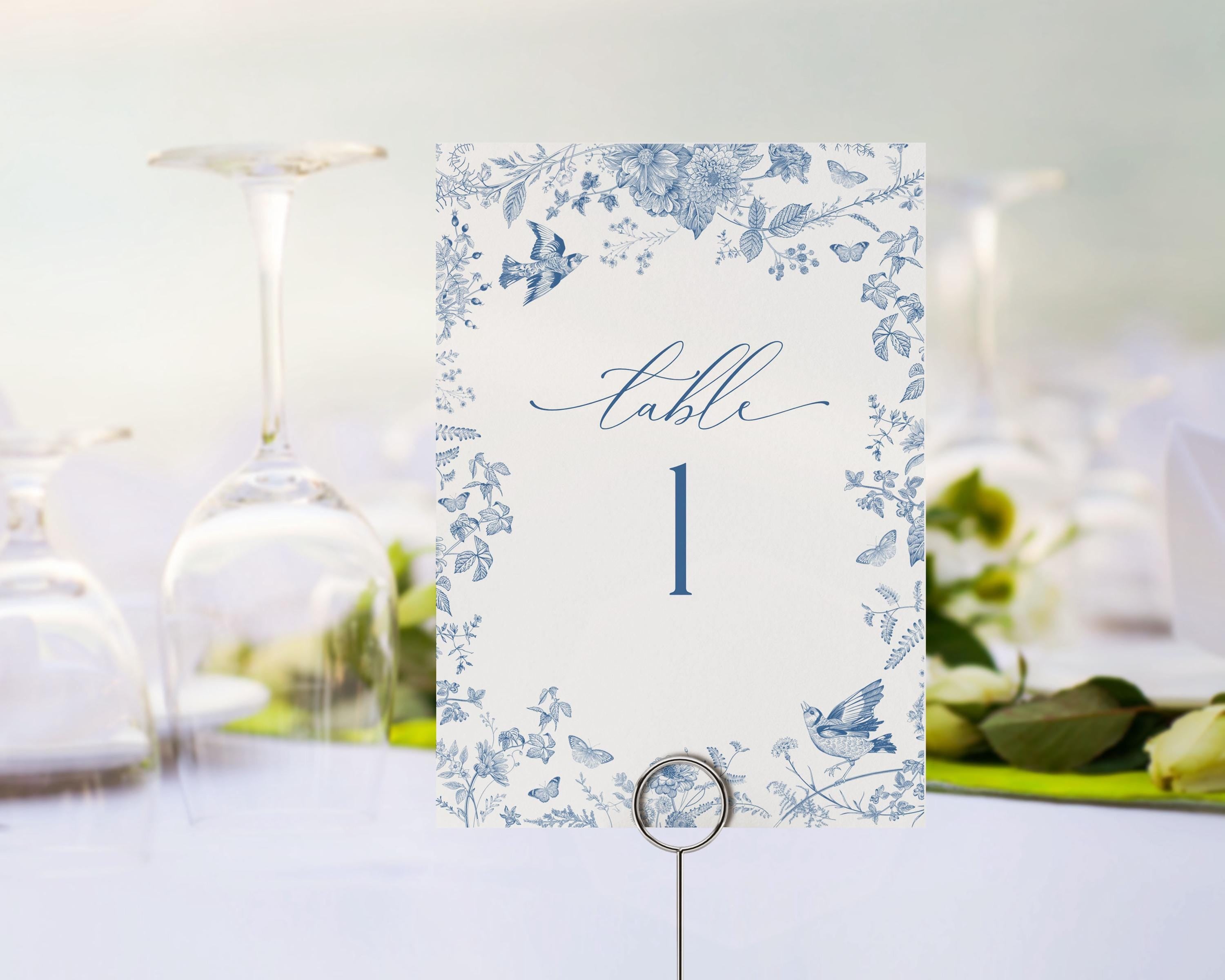 Blue Toile De Jouy Table Number Cards Printable Template