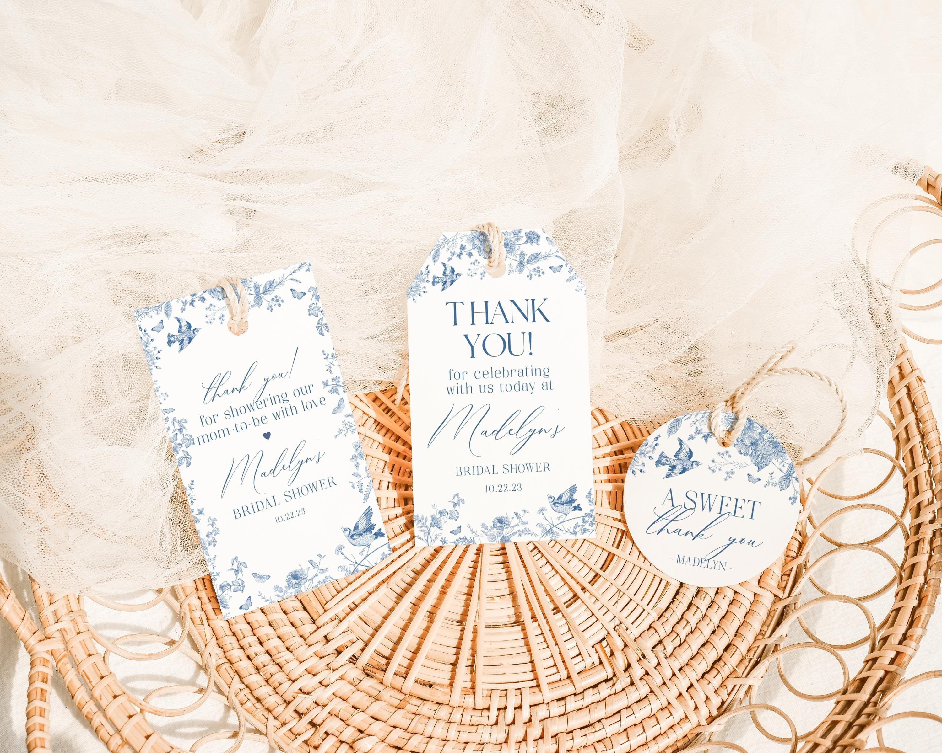 Blue Toile De Jouy Bridal Shower Favor Tag Printable Template