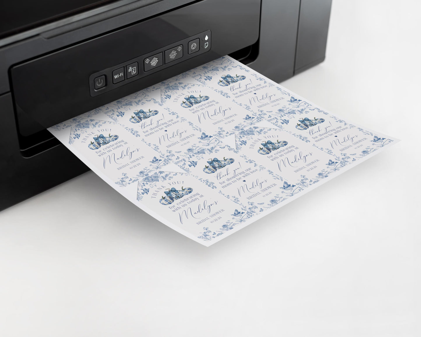 Blue Toile De Jouy Bridal Shower Favor Tags Printable Template, Fall Chinoiserie Bridal Shower for September October French Theme Wedding
