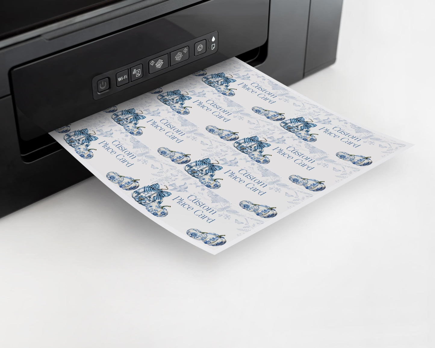 Blue Toile De Jouy Pumpkin Place Cards Printable Template