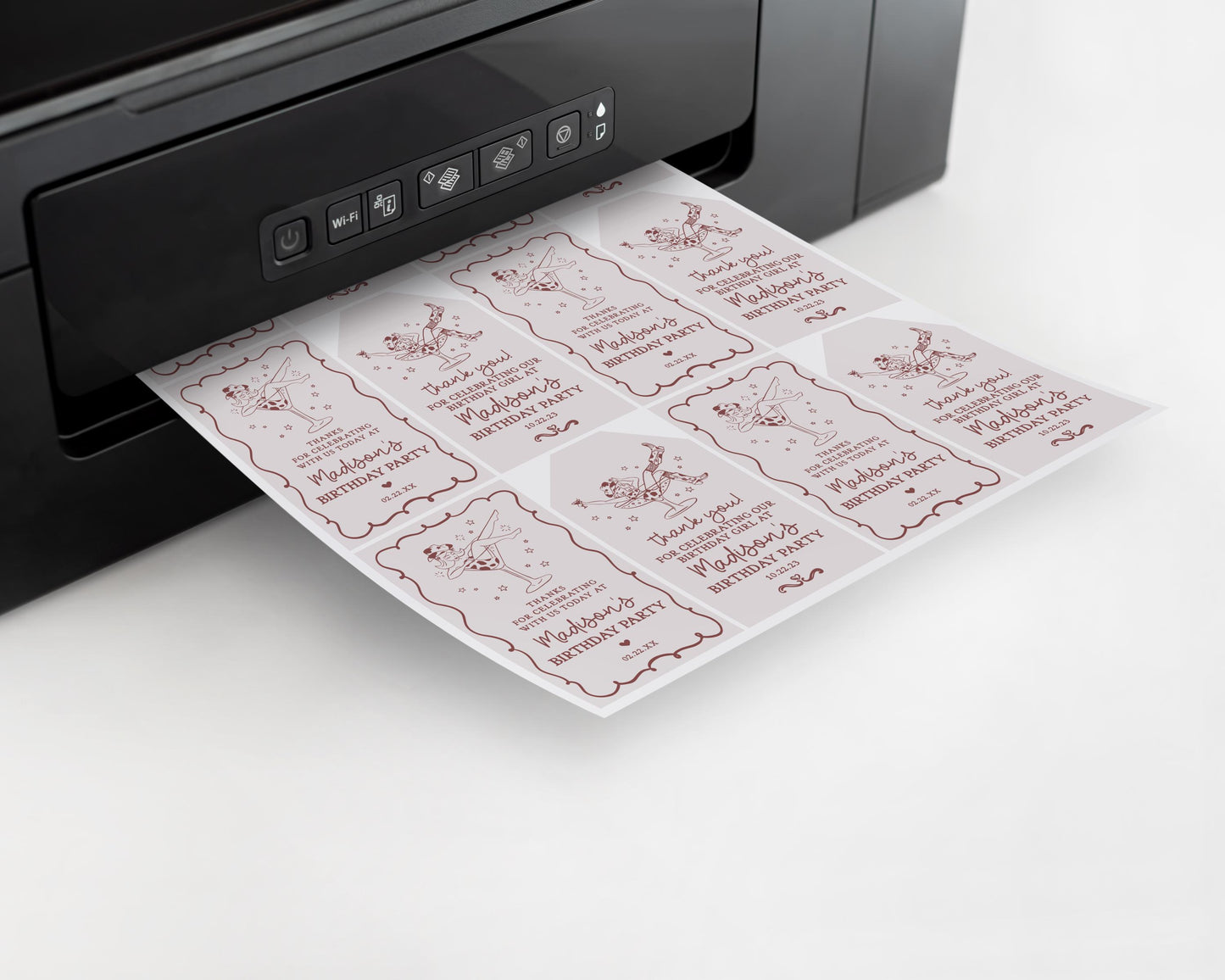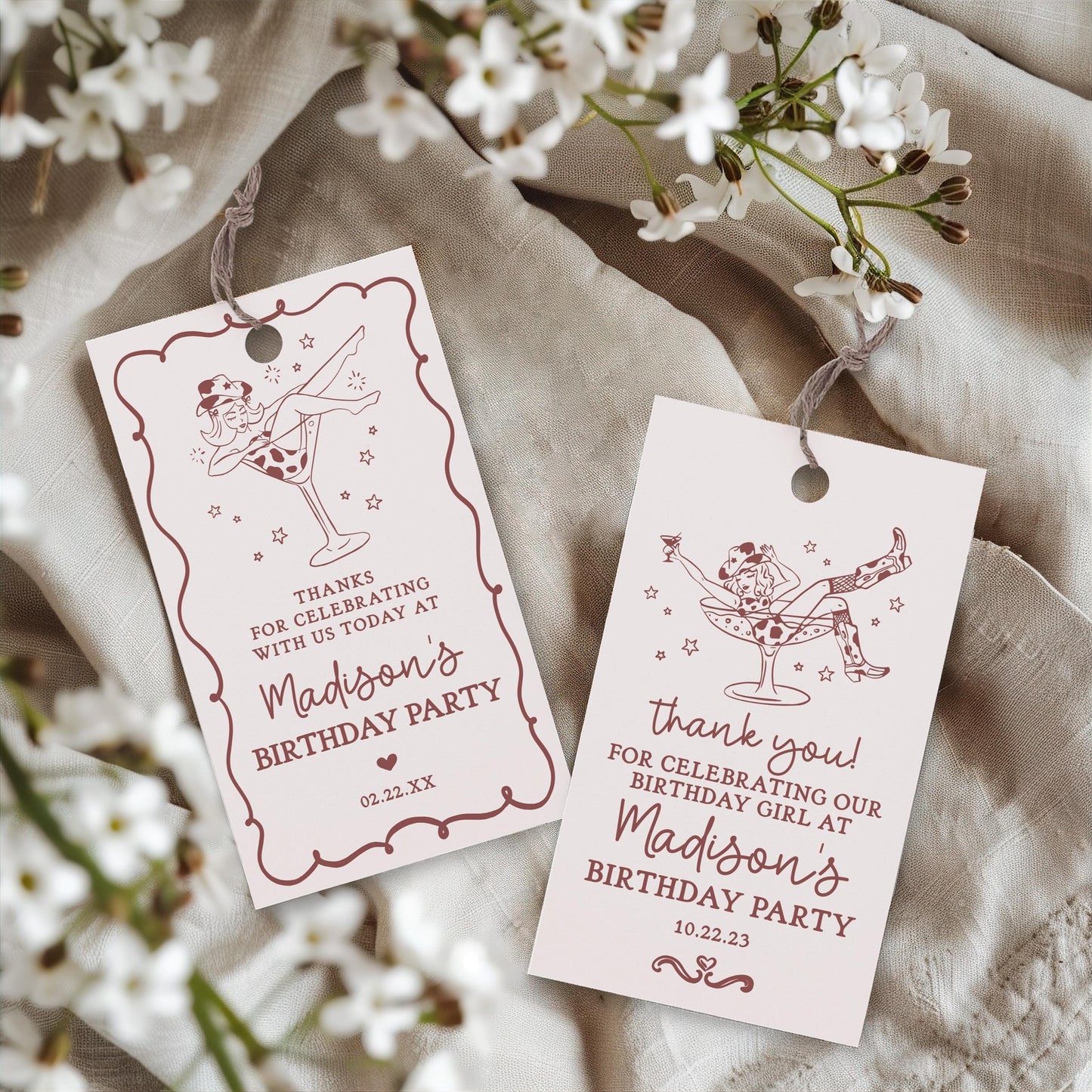 Burgundy Cocktails and Cowgirls Birthday Favor Tags Template